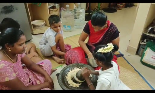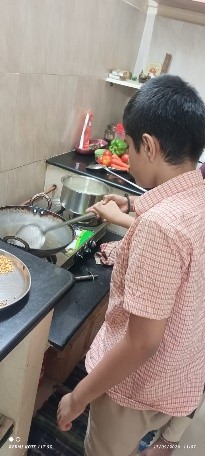 Grade 1 – The Fire Bird and The Hut in the Forest – Fairy tales – where the prince gets married to the princess, where the little Chefs make crispy doughnuts and serve. The Little Chefs of the class got down to the old times where the dough was made on the old fashioned "Aatu Kallu – grinding stone" which is a good proprioceptive activity for the children, along with a sensory activity to feel, touch, grind the dough. They watched while an adult fried the dough in the form of Vadai's, with excitement, awe and anticipation. This was consistently done by them for 3-4 weeks.