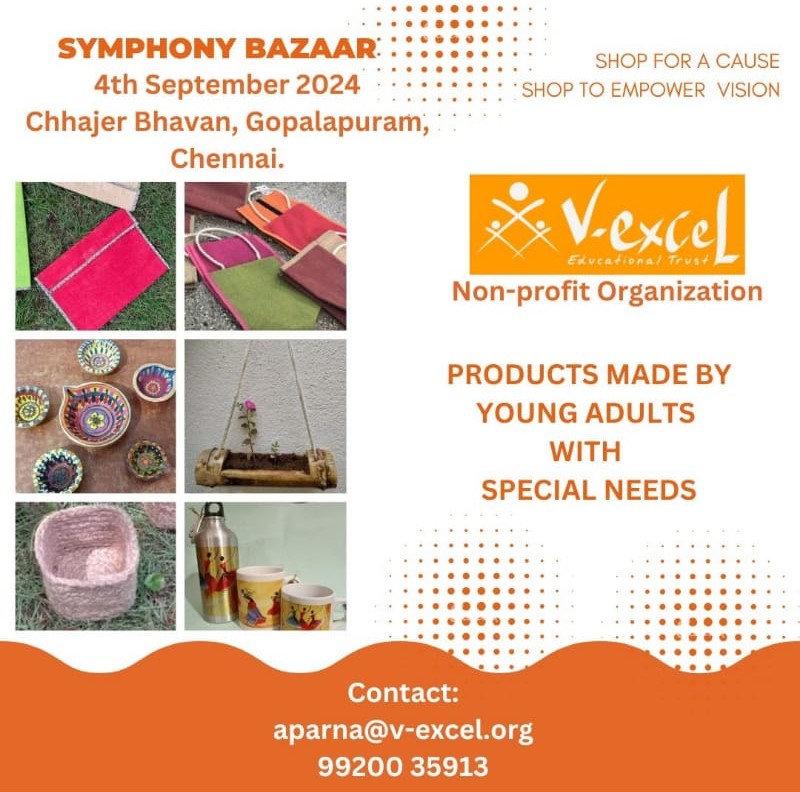 V-Excel was invited to participate in the Inner Wheel Club of Chennai's Symphony Bazaar September 4 at Chhajer Bhavan. The products from all three units in Chennai were put up for sale. A few of our trainees assisted and enjoyed interacting with the shoppers and took pride in explaining the production processes. The products were much appreciated; people were connected to our cause and took the time to understand all we do. We received some advance orders for Navratri and made a few connections for future collaborations. A very fruitful day indeed. We are grateful to the folks at the Inner Wheel Club of Chennai Symphony for the opportunity.