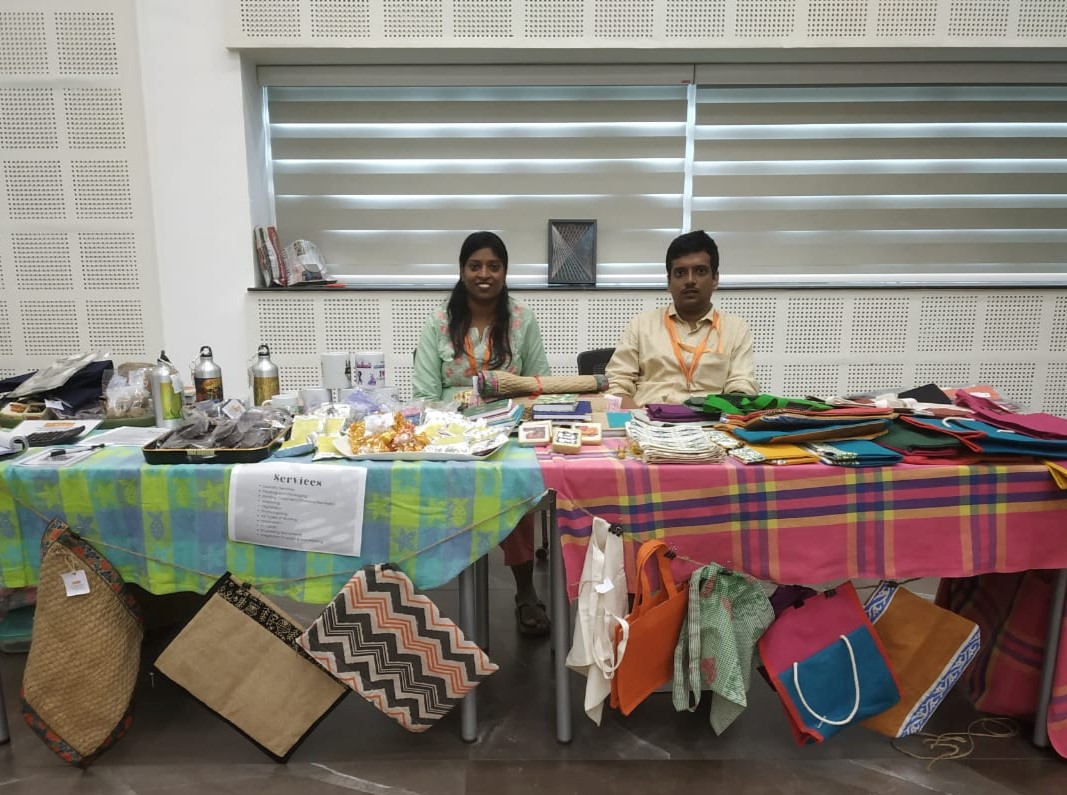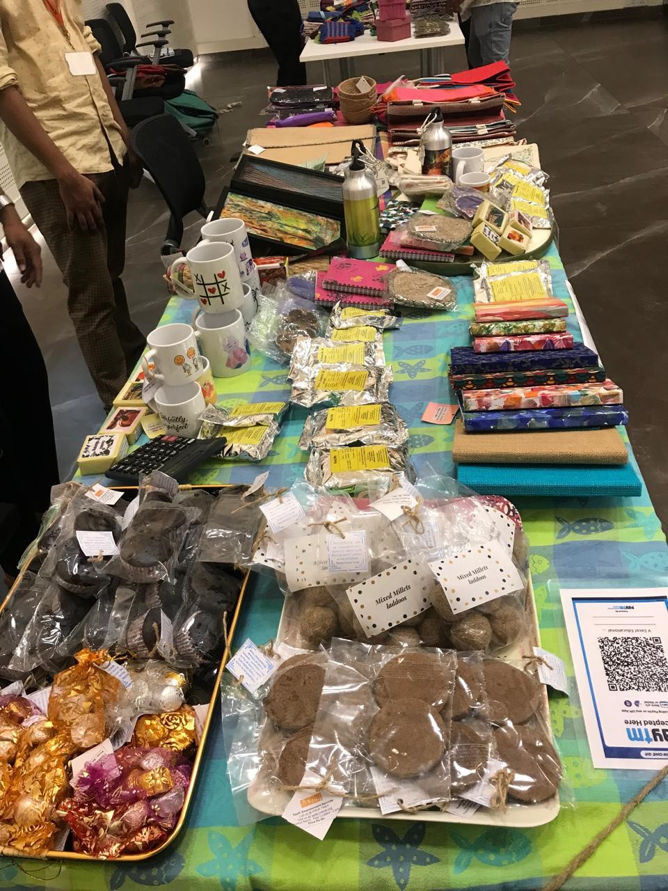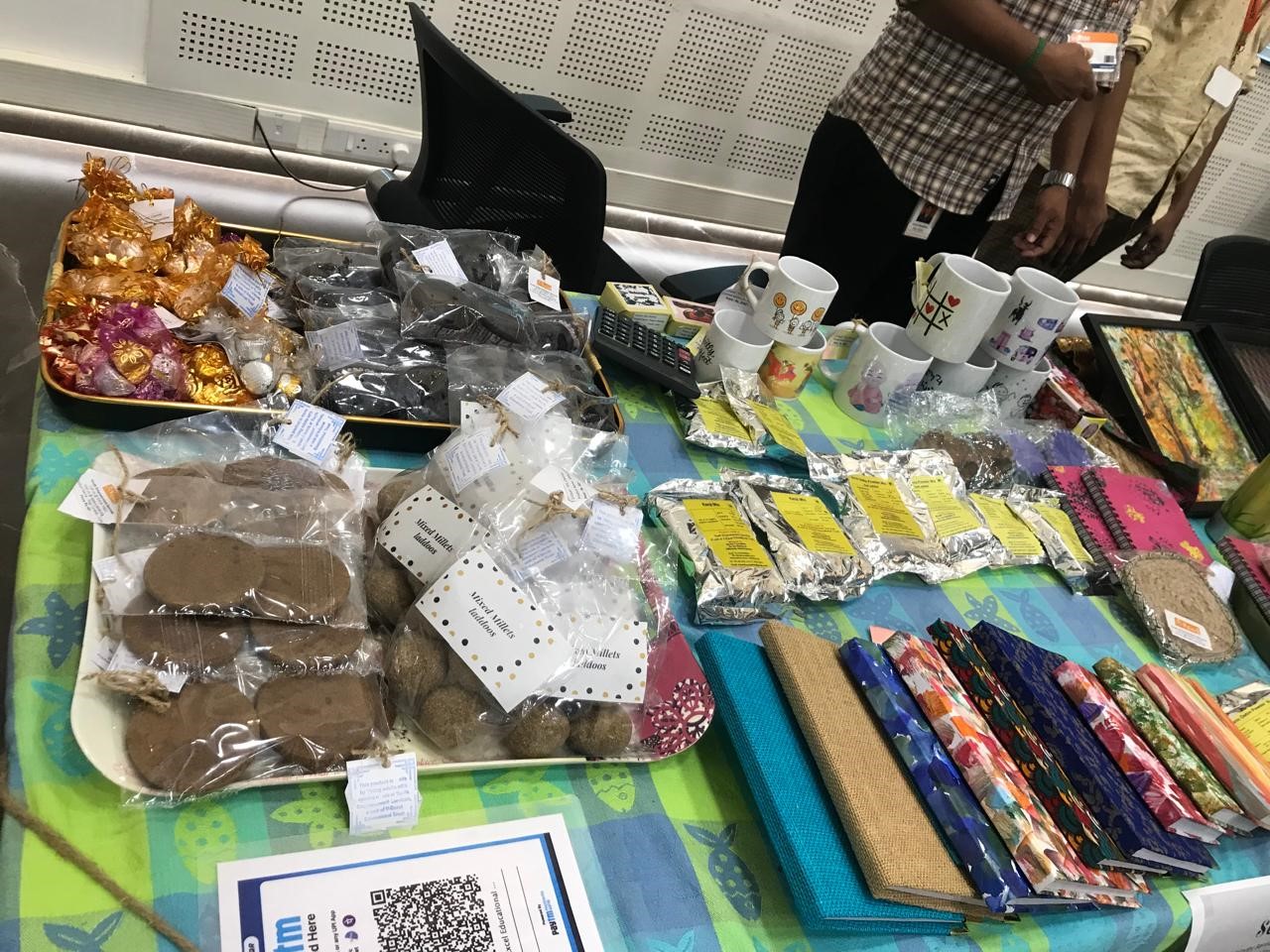 On 04 September, YES along with VTU team was invited to have a product stall for the employees of Grundfos at their premises. The stall started at 10 am and ended at 4.30 pm. Yuvaraj and Sujanya along with the trainee Arvind Ramprasad set up the products and manned the stall for the first half of the day while the second half of the day was managed by the team from VTU. YES products received muchappreciation, and the Millet Laddoos, Handmade Notebooks, Laptop Sleeves got special applause.