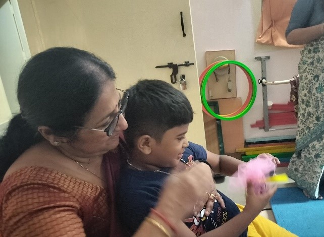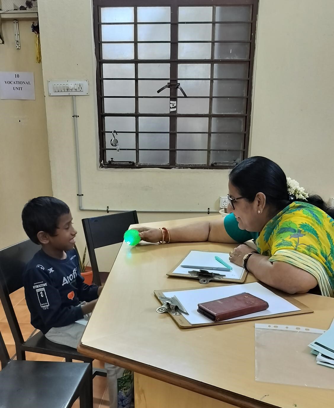 Ms. Saranya noticed that he is interested in Social Interaction. Whenever another child / therapist was engaging in conversation, he would always be intrigued by it and pay close attention. Now, with Saranya's Intervention his Social Interaction has drastically improved. She notes that he is interested in engaging in new activities and that he is able to grasp them fairly quickly just by observing.