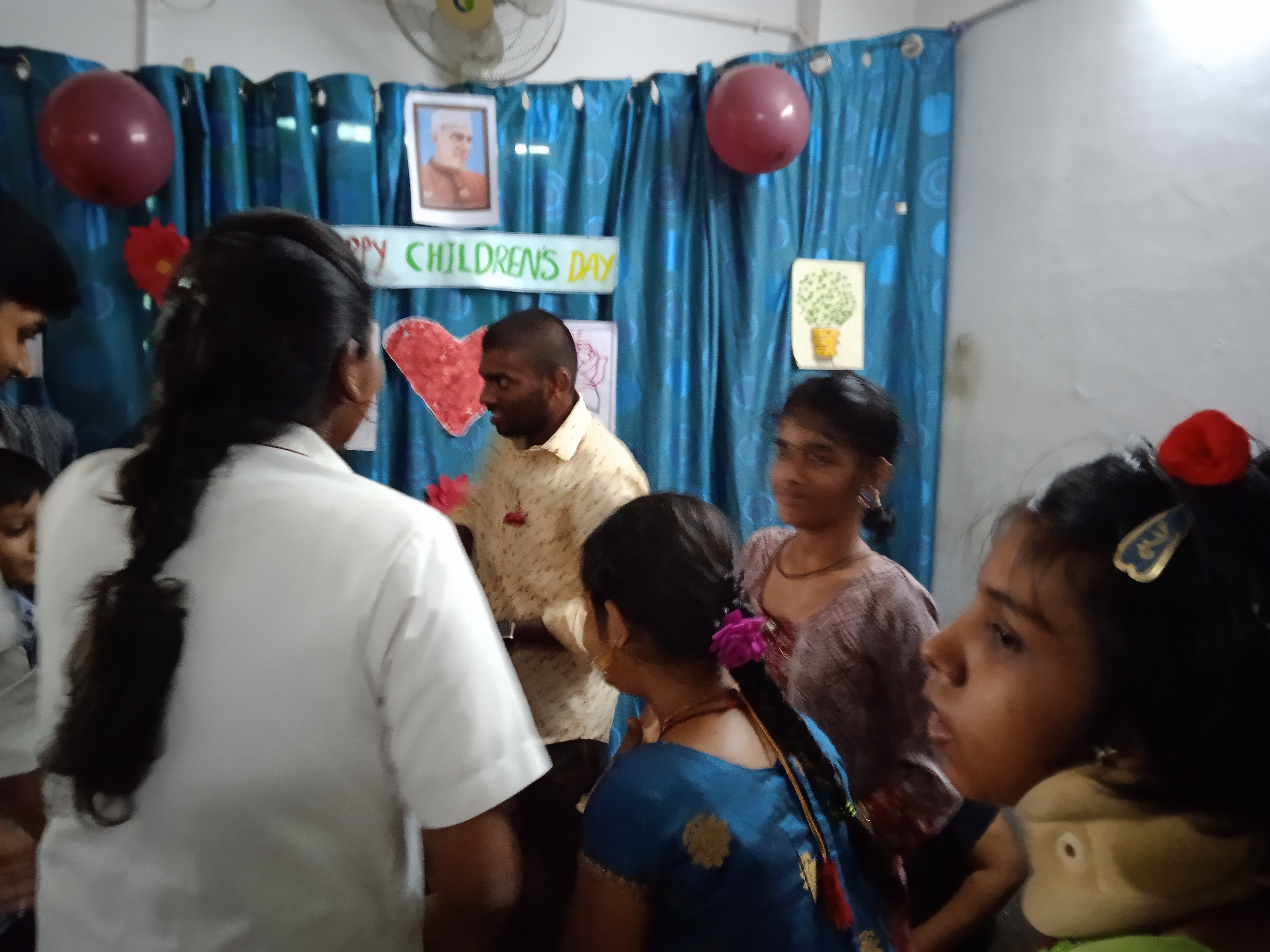 On 14th Nov, we conducted fun games and our children thoroughly enjoyed them. We had arranged snacks for all children and staff. This time student trainees from Nandha College (physiotherapy department) participated in the event. They engaged with our children by dancing with them. They also enjoyed the celebration.