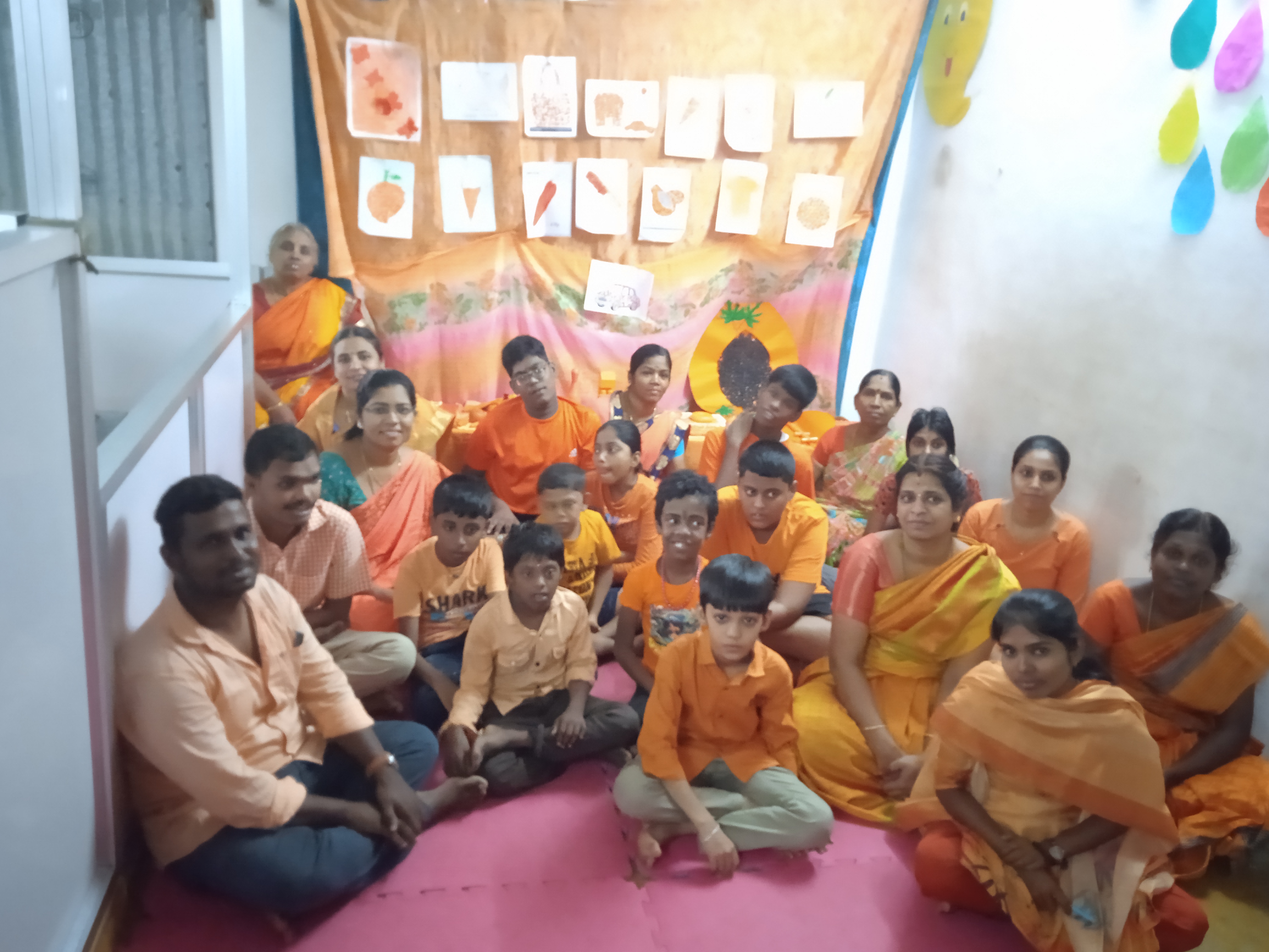 On 29th Nov, we had colour day with orange colour as our theme. As done by every month, this month also we decorated our centre with orange colour art work. All the staff and students wore orange colour dress. We observed that through this process, the children could identify the colours well and could relate these colours to the environment.