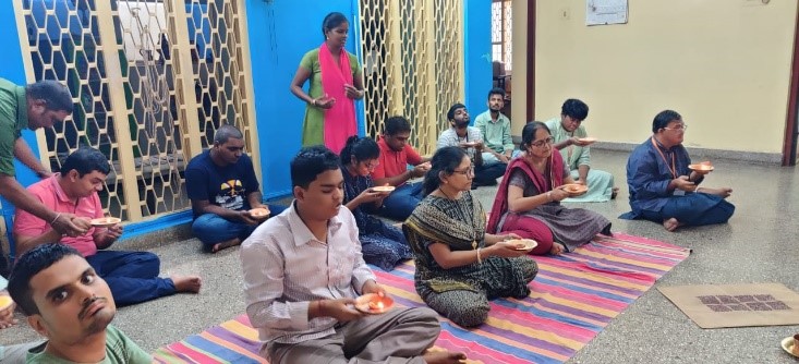 One of our well-wishers Dr. Janani, a psychiatrist by profession, and devotee of ISKON organised Deepotsav in the auspicious month of Karthikai at VTU. Staff, teachers, and trainees lit ghee lamp and offered to Lord Damodara. She sang a beautiful song on the lord and trainees chanted Hare Krishna, Hare Rama.