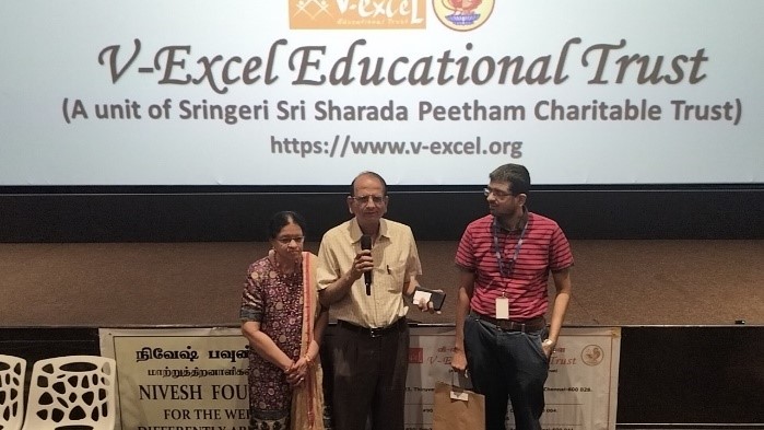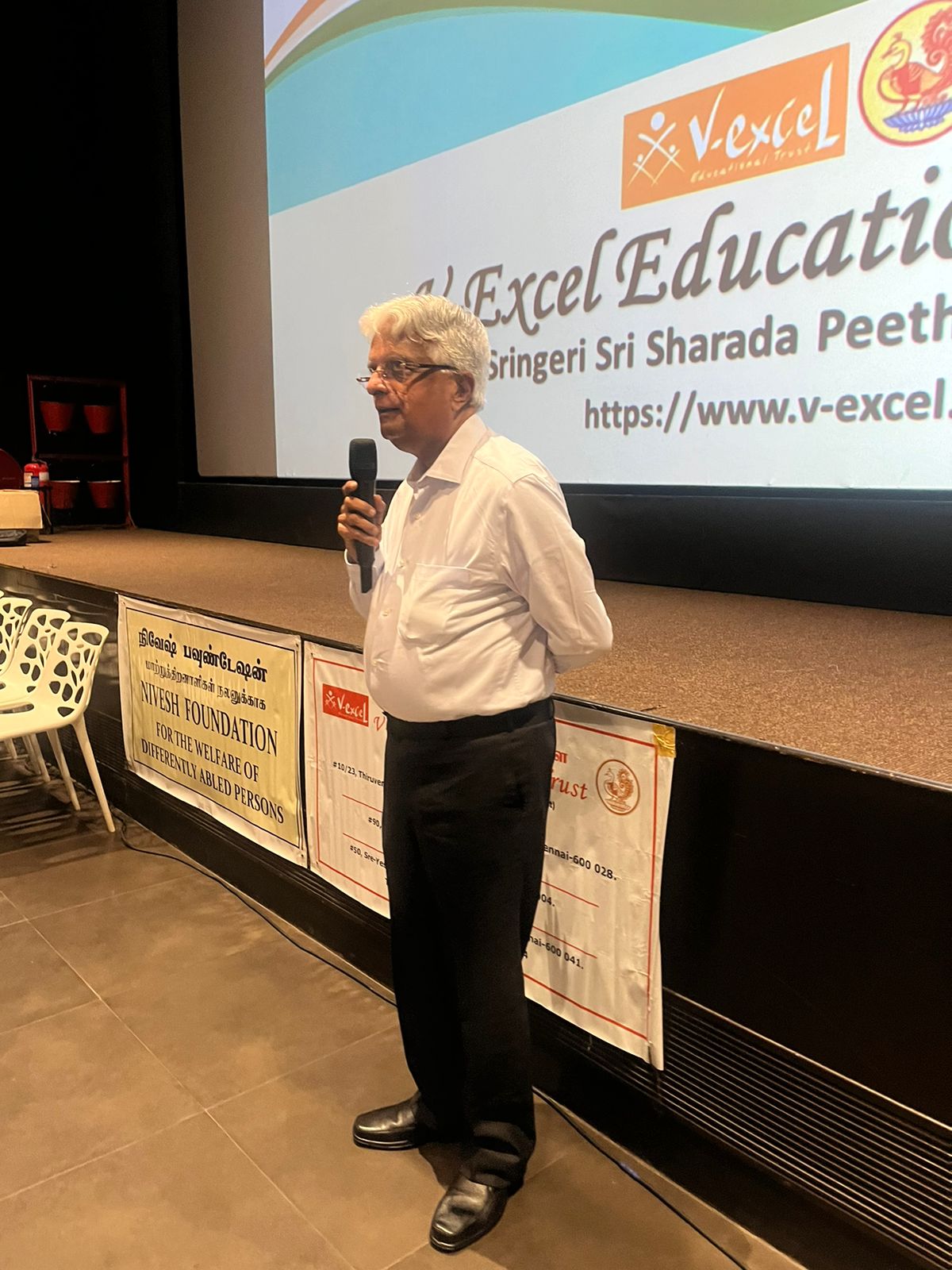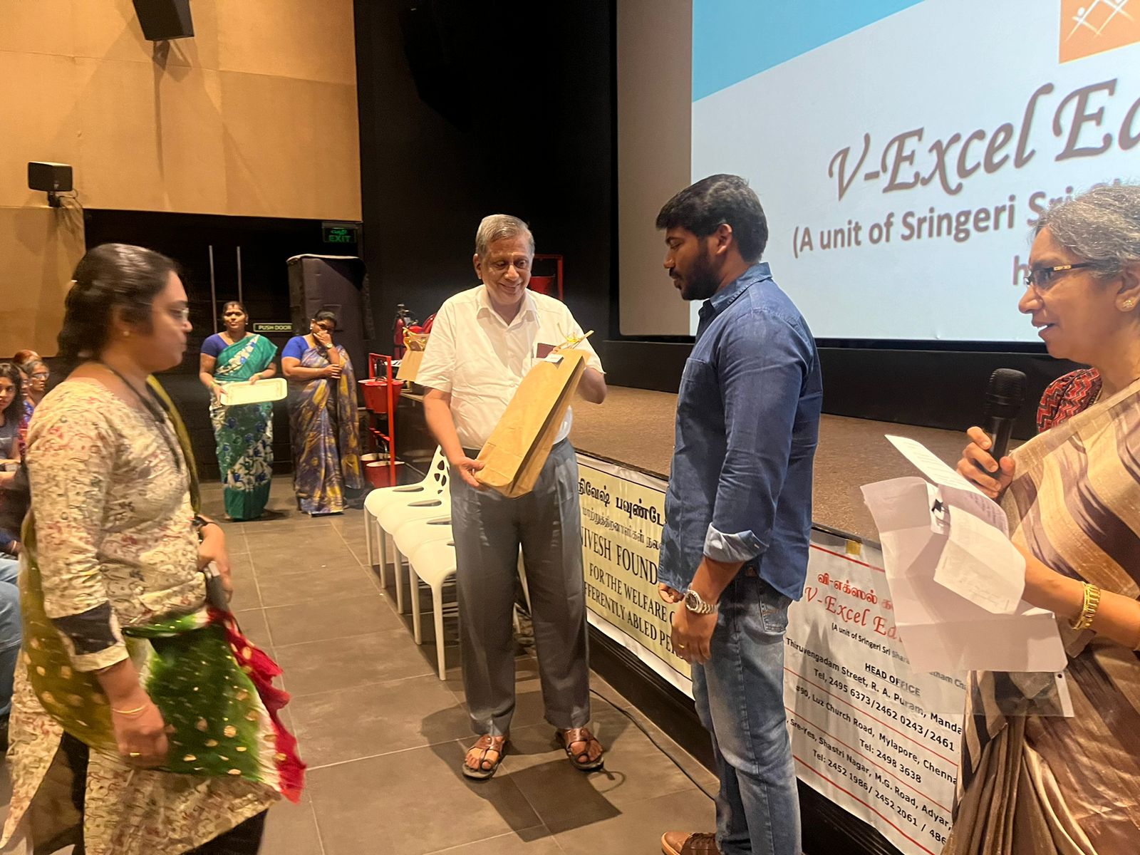 'Chandramouli,' ex-trainee of VTU and YES was the first one to be placed in an open employment from V-Excel. A documentary was shot before lock down and it got ready by 2022. Trustee Advisor Prof. Anand Jagadeesan got it certified from the Central Board of Film Production. VTU and Admin team in the leadership of Prof. Anand organised a private screening at Sathyam Cinema on Saturday, 16th Nov 2024. Shri Somayaji, Senior Advocate and Ex Attorney General of Tamil Nadu was the Special Guest. Movie was screened. Post that, VTU honoured those who worked with Chandramouli's training at VTU and YES. His employers were felicitated. The mementos were sponsored by Nivesh Foundation – SNEH. Currently Chandramouli works with Star Health Insurance and the General Manager Mr. Ramesh Govindarajan was present for the event. He was very happy about the work we have done and Chandramouli's work. We had lots of media coverage for the same