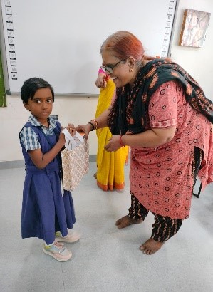Pongal celebrations: We celebrated Pongal festival in our center by engaging the kids in arts and crafts related to the Pongal festival; we also decorated our center with crafts related to the festival. Children came in traditional wear on the day of celebration. We educated our children about the harvest festival and the importance of our traditional values. They also learned all about the ingredients required to make sweet Pongal. We prayed to the Sun god, and the kids enjoyed the songs that we sang related to the festival. We were happy that Mr. Abuthahir and Mrs. Sumathy from SAF joined us for the Pongal celebration and exchanged sweets with our children.