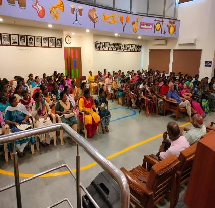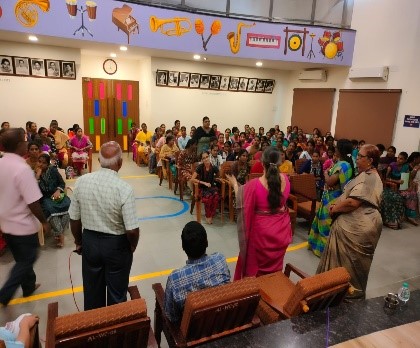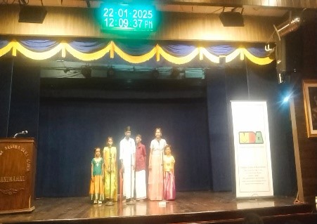 This year we had selected 10 trainees who attended the usual day at VTU on 6th Dec 2024. They stayed in the center that night. Next day, on 7th morning, they had their morning routine and continued in the training center. On 6th evening they were taken to the award function, by Margazhi Mattram, at BVB, where our Founder Director Dr. Vasudha Prakash, received the prestigious award for her contribution to the community. Trainees and teachers had delicious dinner at Mylai Karpagamabal mess at Mylapore. Trainees who were fussy in eating enjoyed and were able to ask for more items. They slept at the center where all arrangements were made and next day had breakfast and delicious lunch. For most of them it was a first time experience leaving their parents and staying outside with new friends and environment.