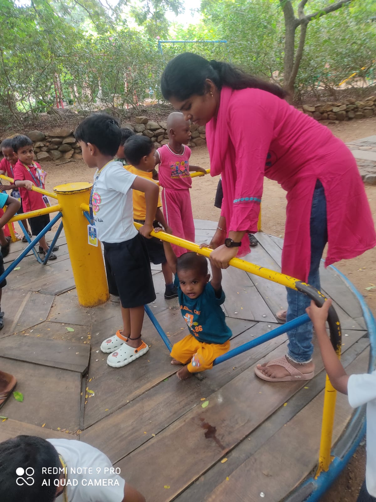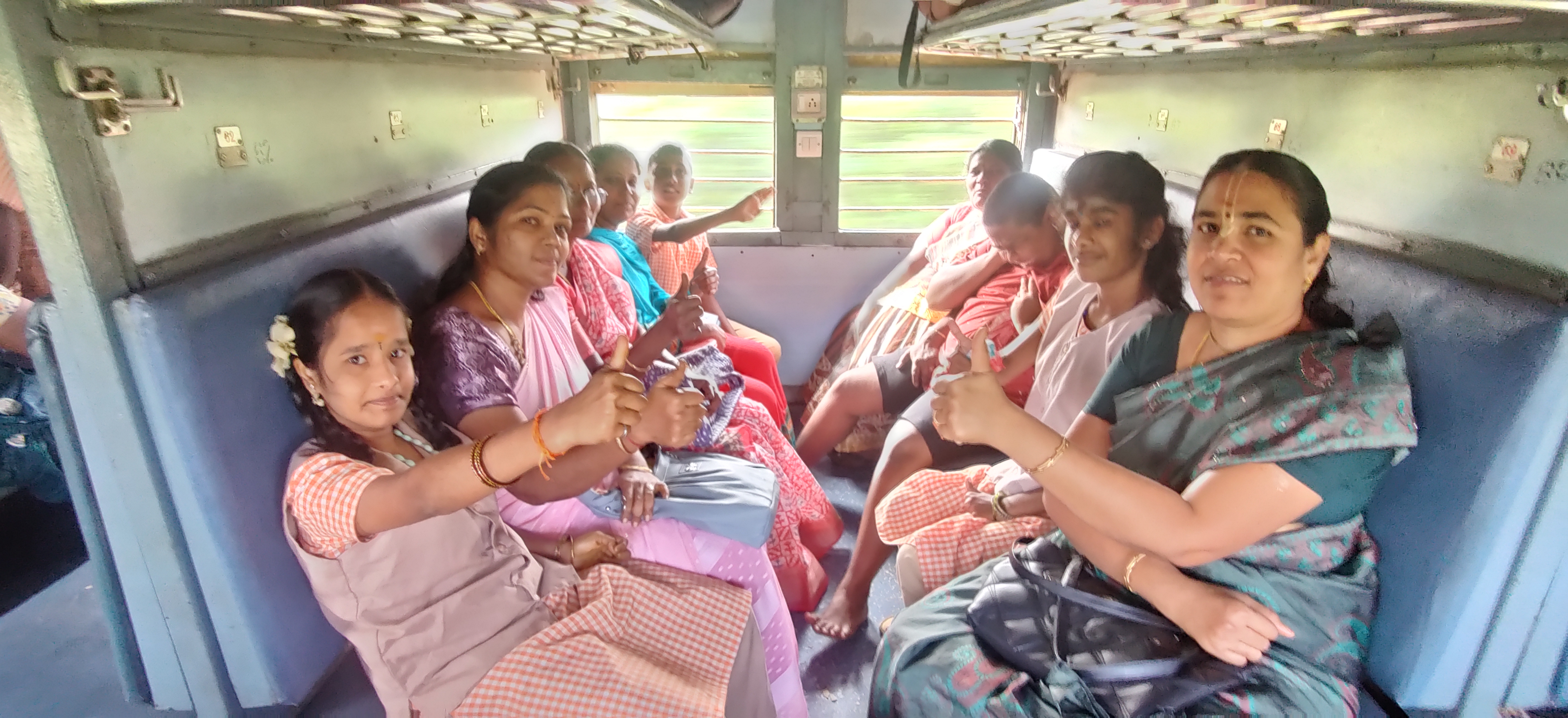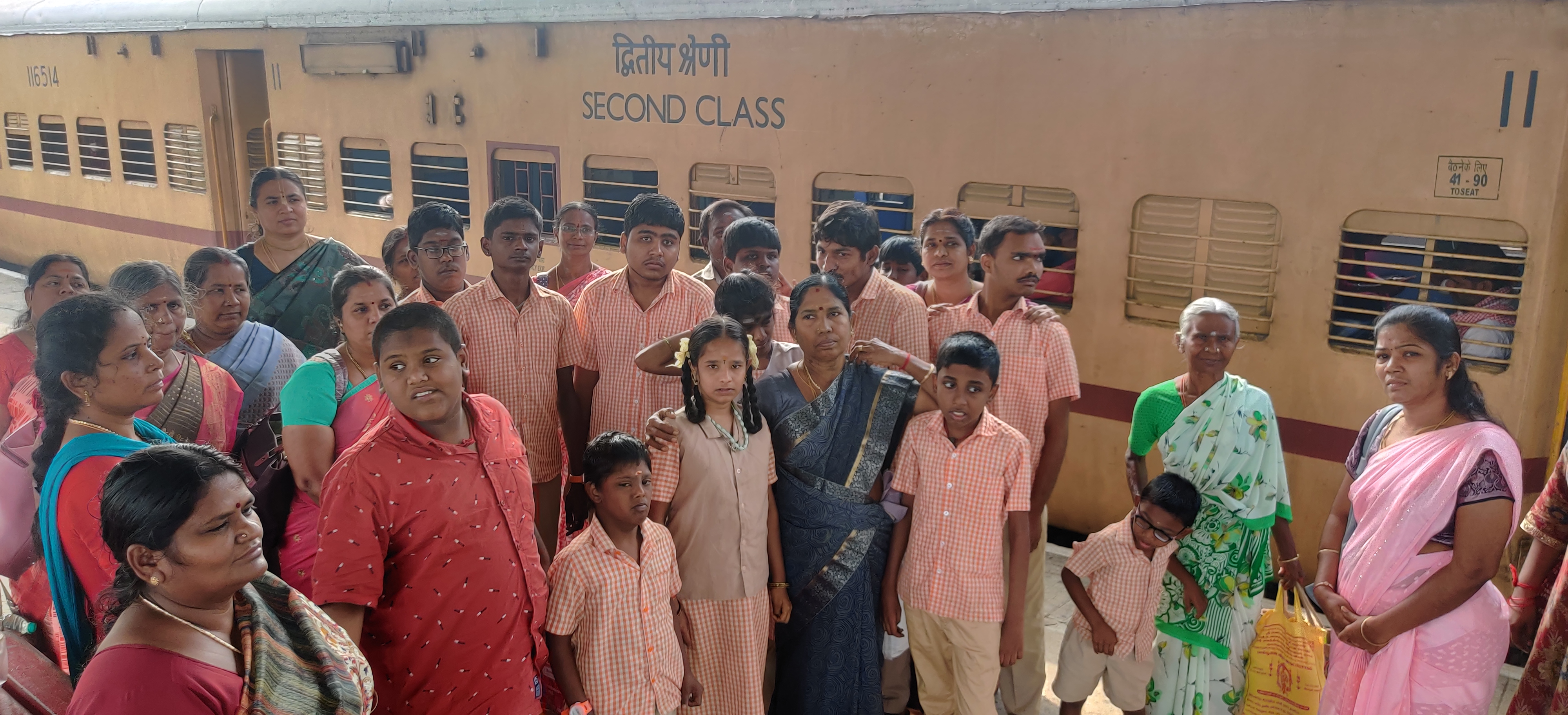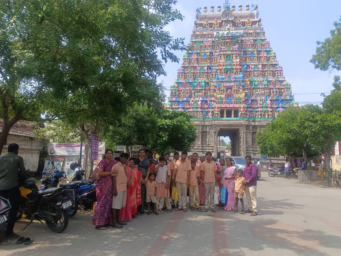 On 22nd Jan 2025, we started our school tour with a one day trip in train to Karur, Thanthonimalai temple and Pasupatheeshwarar temple. Children with their parents and staff enjoyed the train travel. The students sang bhajans in the temple, the public also participated and all enjoyed. We provided lunch and snacks to all. We all with our children and parents thoroughly enjoyed the train journey and reached back safely.