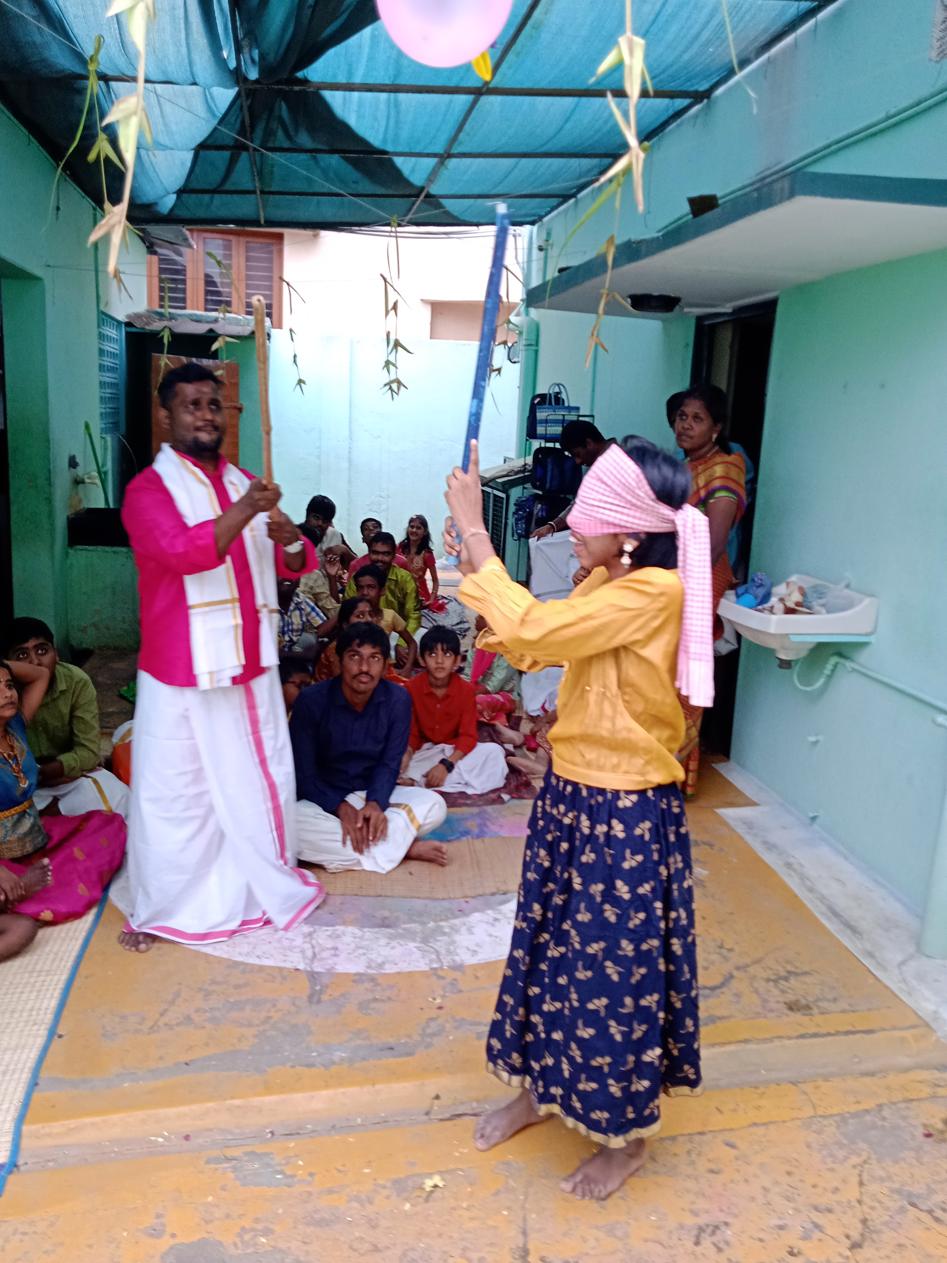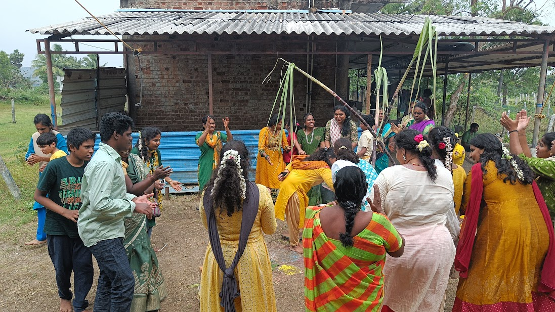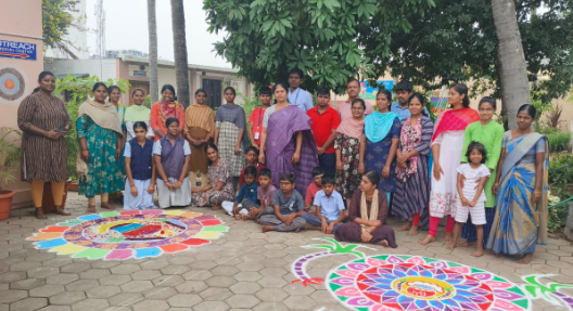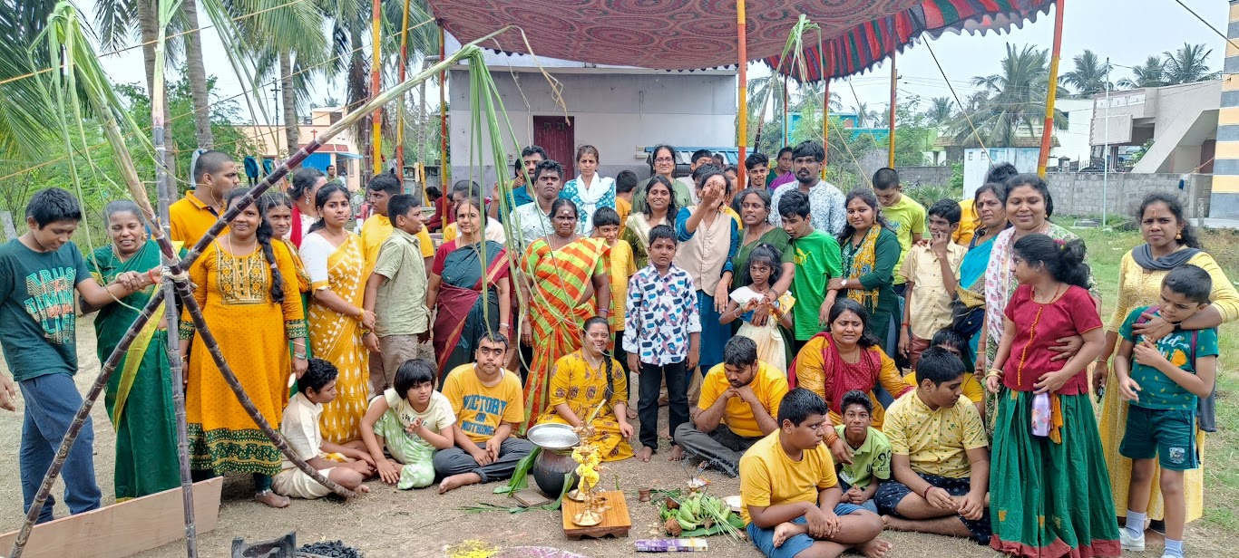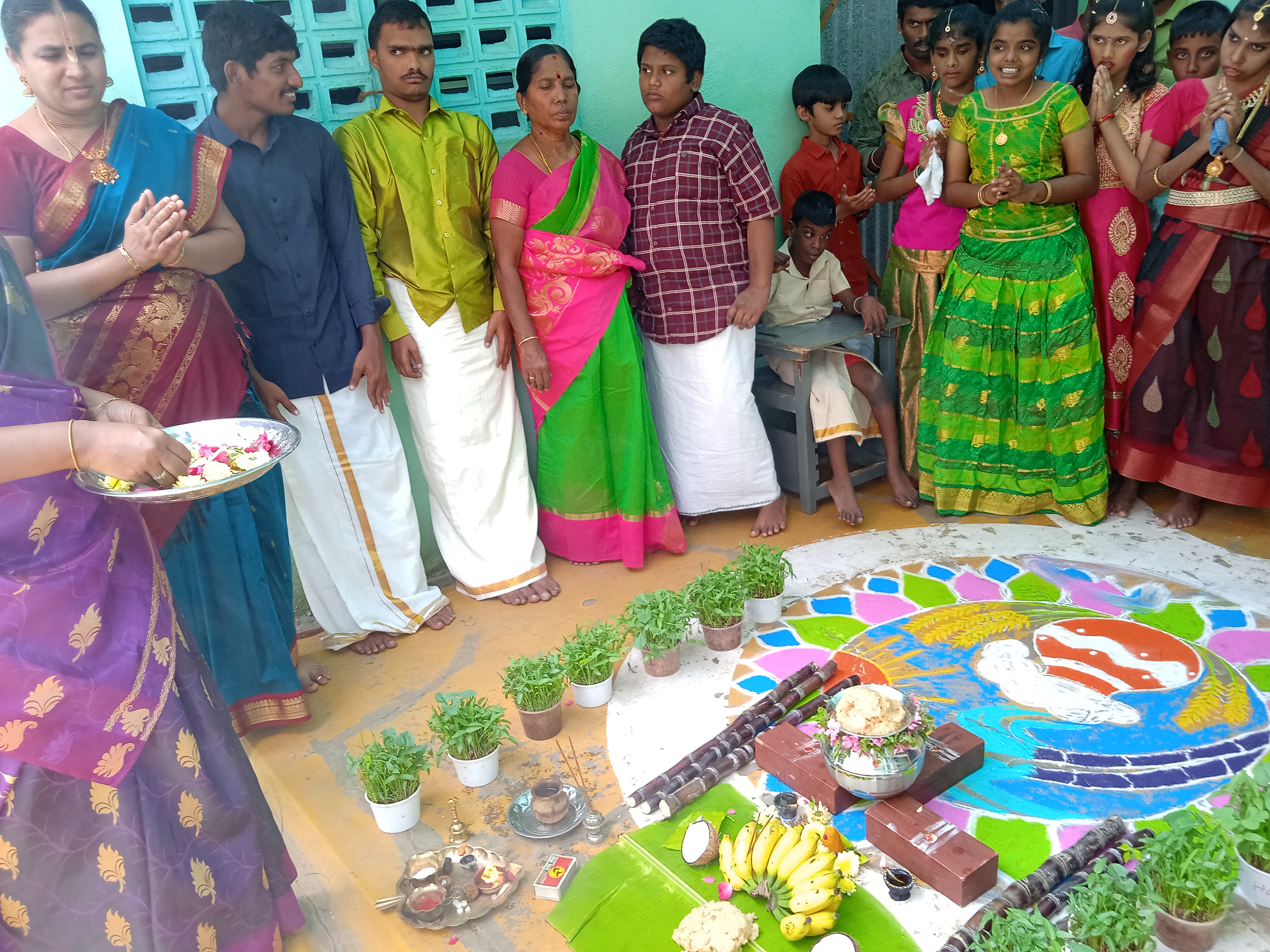 YES team celebrated Pongal festival on 13 January in a grand manner. The whole place was decked up with flowers and rangoli. The small Vinayagar temple in the premises was renovated the previous week by the YES team. Trainees and trainers joined hands in painting and decorating the walls, cleaning up the sanctum sanatorium, and cleaning up the surrounding place. On 13 January, the celebration started with a small puja in that temple. Fun activities started with a kolam competition for the male trainers who teamed up with a few trainees to show their talent. This was followed by so many interesting fun games, both indoor and outdoor. Celebrations for that day ended with native dances like kummi and kolattam.