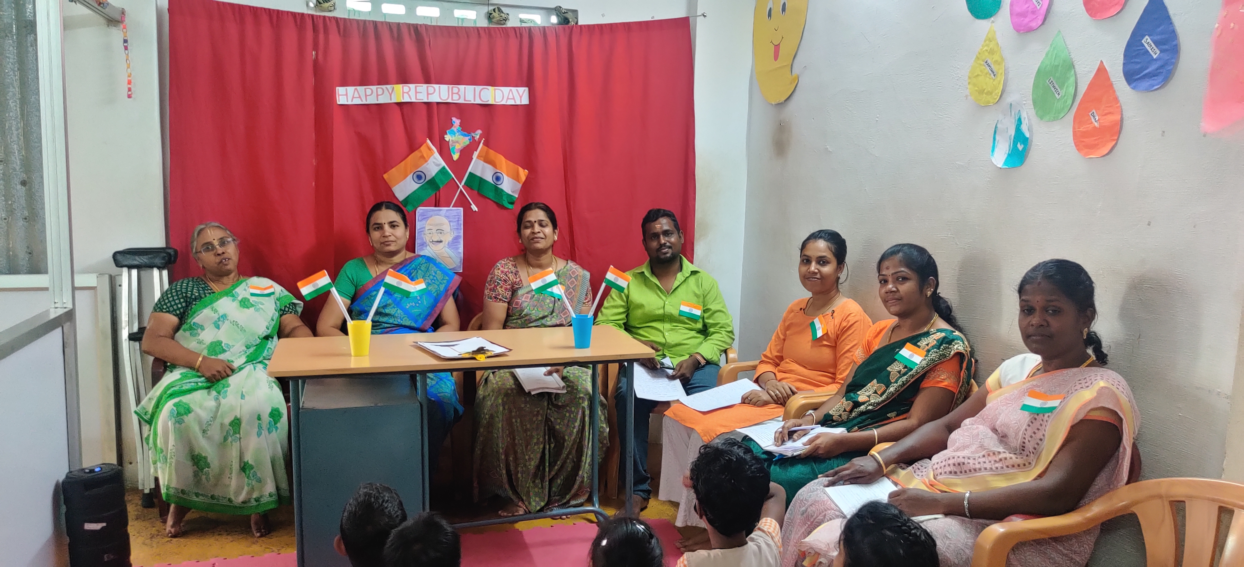 Republic Day celebrations: As a part of Republic Day, we taught our children about our national symbols and our tricolor flag. Art works were done by them, and we sang “Kodi Paattu” and the national anthem.