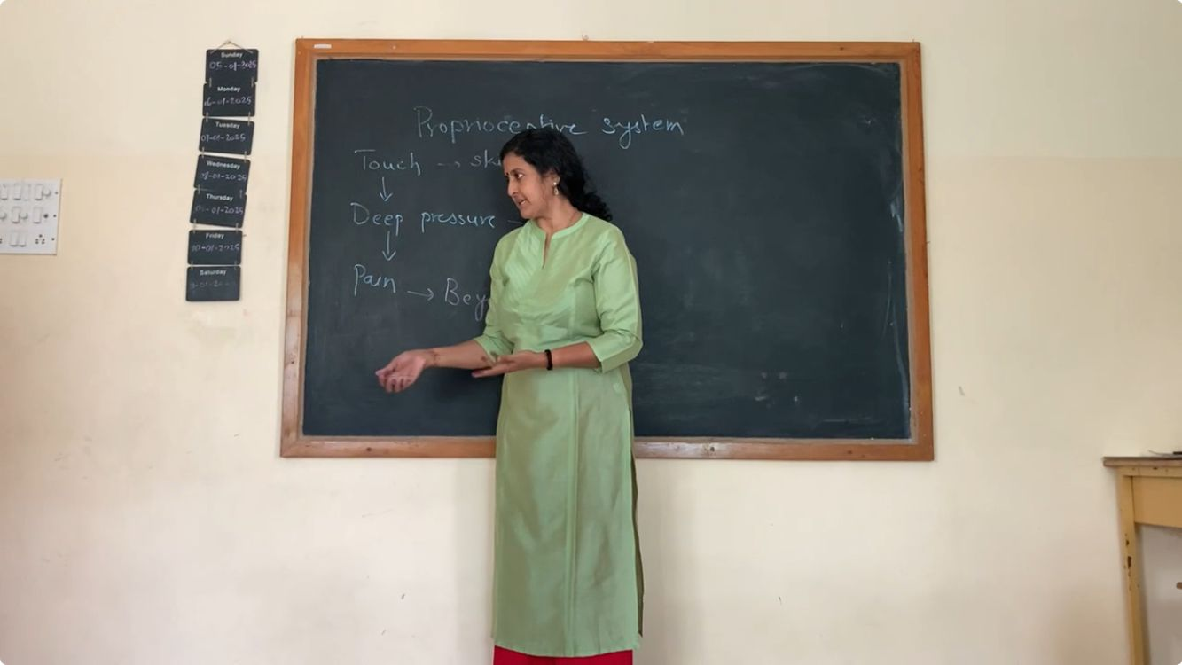 Lakshmi Sudhakaran, our senior therapy consultant, too worked with the teachers in bringing to their attention the Proprioceptive system and its related signs and how behaviours are indicative of sensory needs of the child, with simple easy examples.