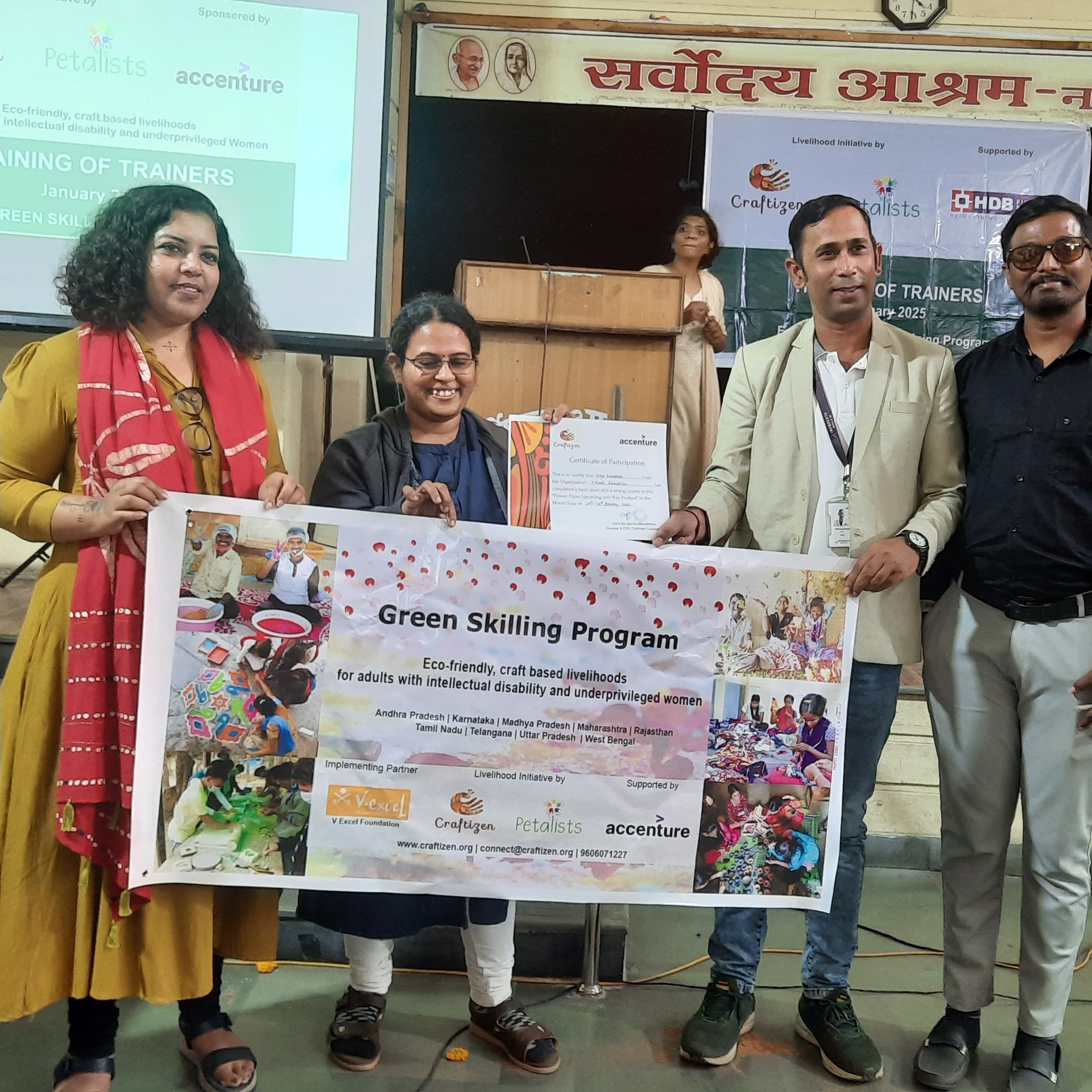 At Nagpur on 29th – 31st January, in the Green Skilling Program, of Craftizen, training for the Trainers, production of Eco – friendly, craft-based livelihoods for adults with intellectual disability and under privileged women was held. Nitya from Chennai and Suvarna from Nashik, V-Excel participated. They will bring these learnings to their colleagues for a better future for the trainees who can work on the products.