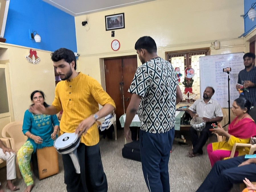 VTU celebrated Christmas and New Year eve this year in a very different way. We invited Mr. Aditya Kamakshinadha, Music Therapist who came and had an amazing interactive session various variety of percussion like Djembe, Maracas, Congos, Tamborine, Cajon, Timpani and many more. He was able to understand our trainees and made them create natural sounds using their hands. He also spoke about communication through music. Each trainee was made to use the instruments following his body gestures and hand. This increased listening skill and maintained eye contact to follow the rhythm.