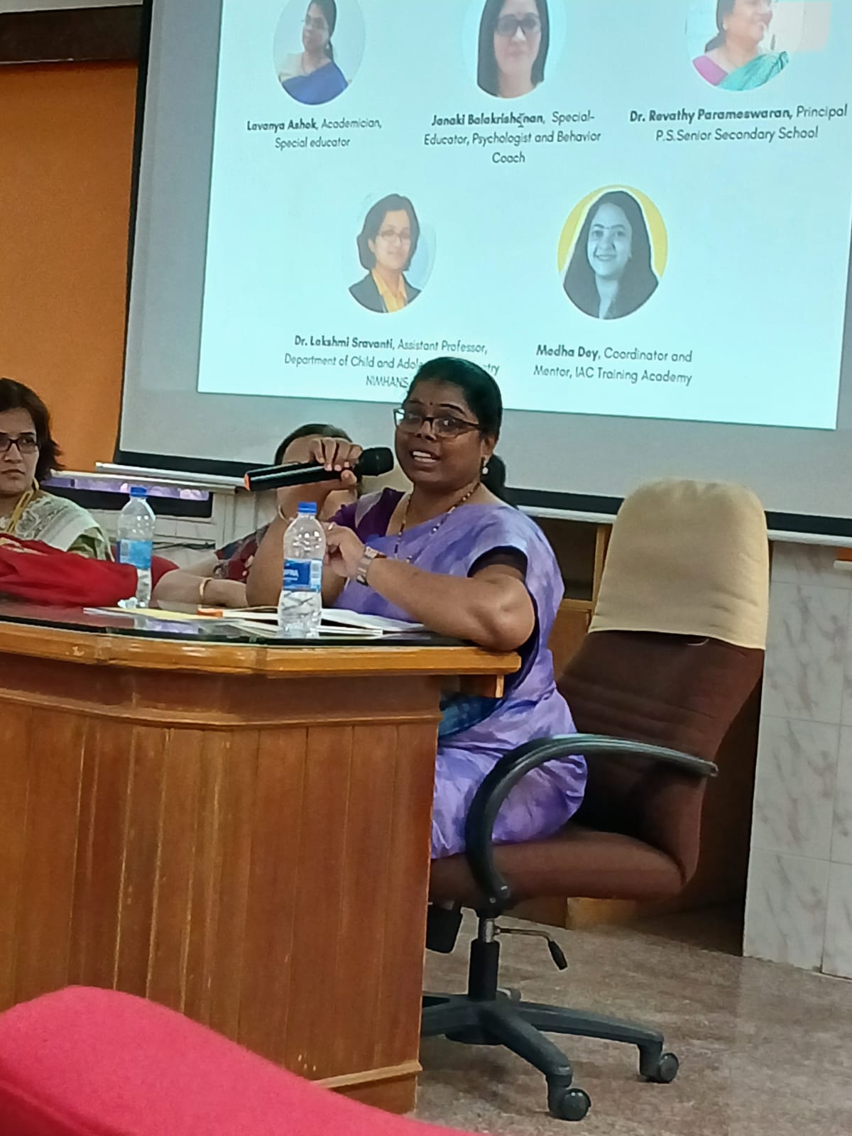 Dr. Vasudha Prakash (Founder-Director), Mrs. Usha Rajagopal (Program Director), and Mrs. Jayadevi Jayaprakash (Counselor) also addressed the gathering, sharing suggestions and recommendations on transition planning.