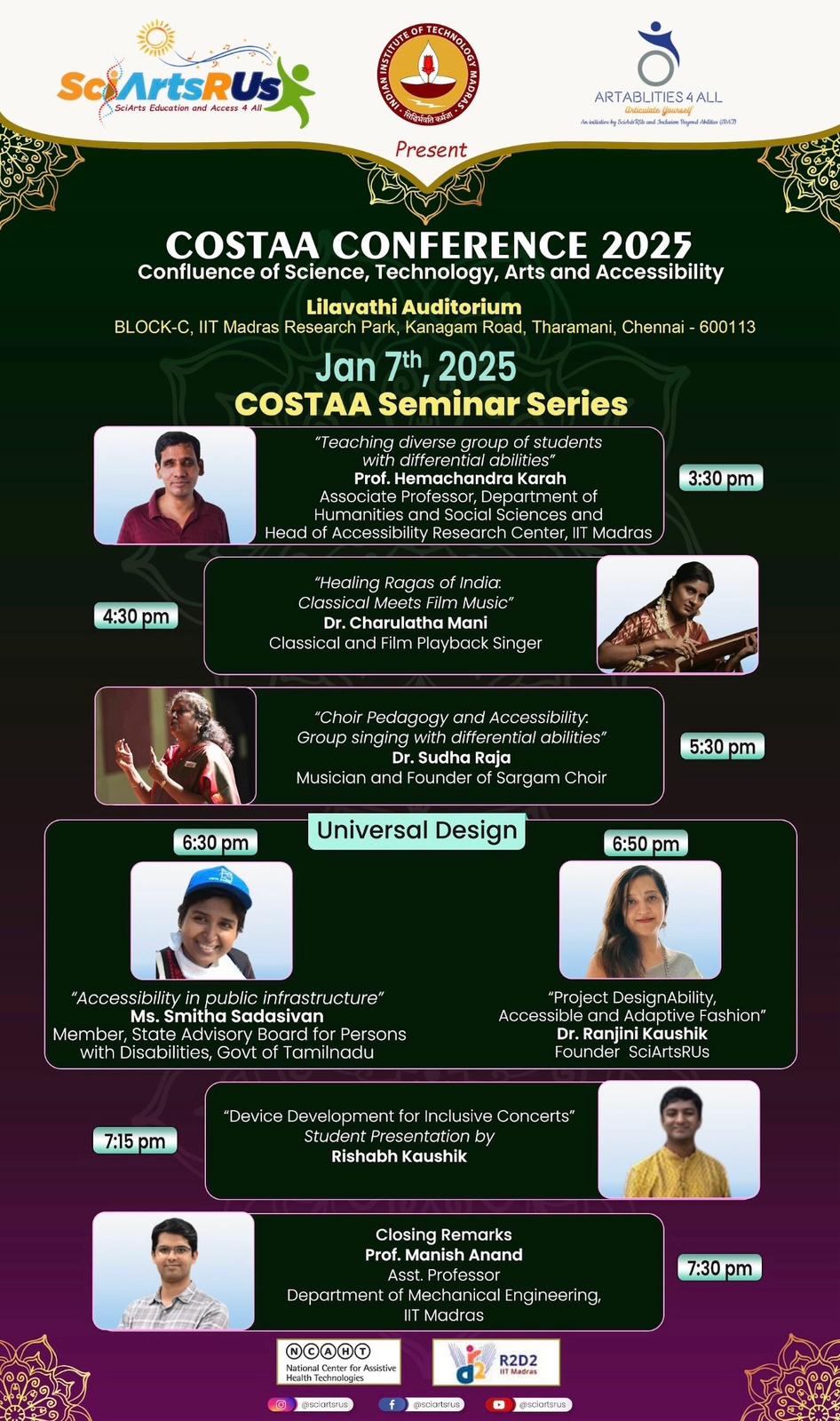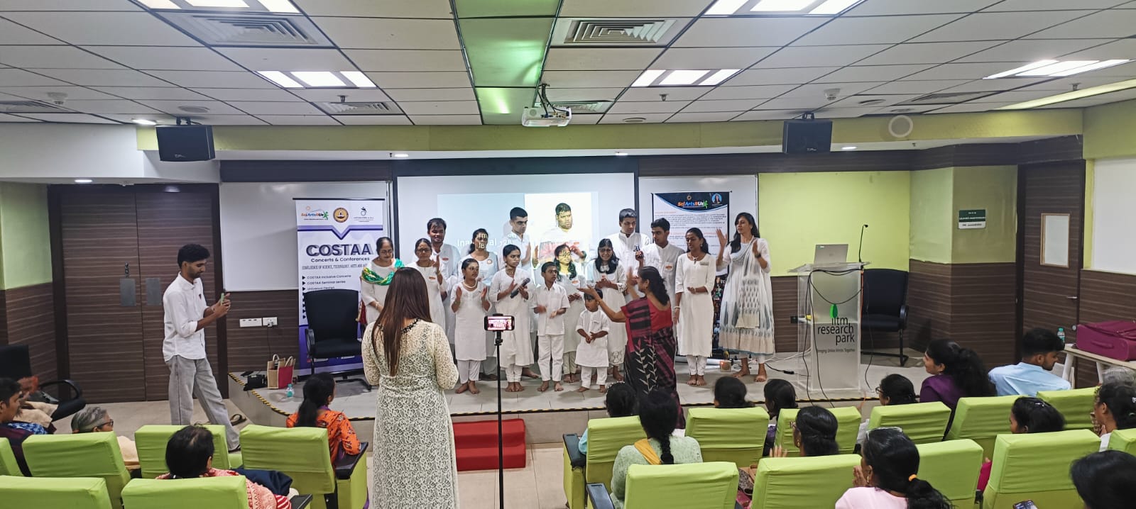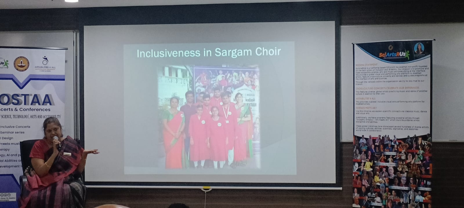 Dr. Sudha Raja of Sargam Choir gave an inspiring lecture-demonstration on "Choir Pedagogy and Accessibility" at COSTAA Conference 2025 at IIT Madras Research Park, Chennai. She spoke about the therapeutic aspects of music and her involvement in training individuals with special needs. Ms. Gayathri Suryanarayanan of V-Excel also shared the inspiring journey of trainees in the inclusive choir.