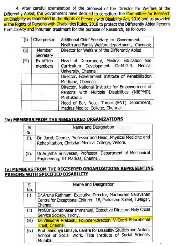 We're thrilled to announce that our Founder-Director, Dr. Vasudha Prakash, has been appointed to the Tamil Nadu Government's Committee for Research on Disability! This is a significant step towards creating a more inclusive society.