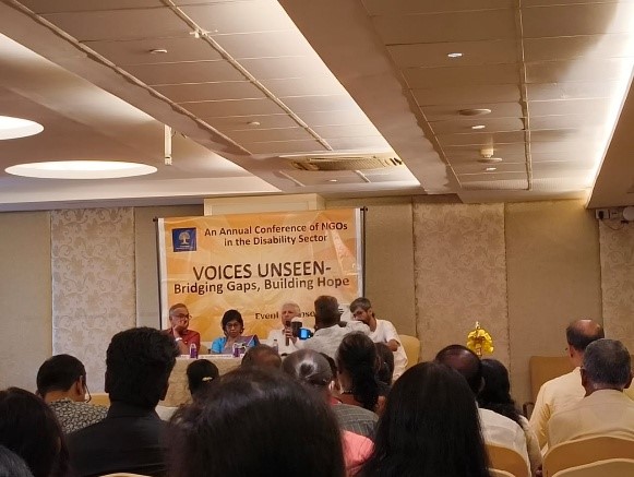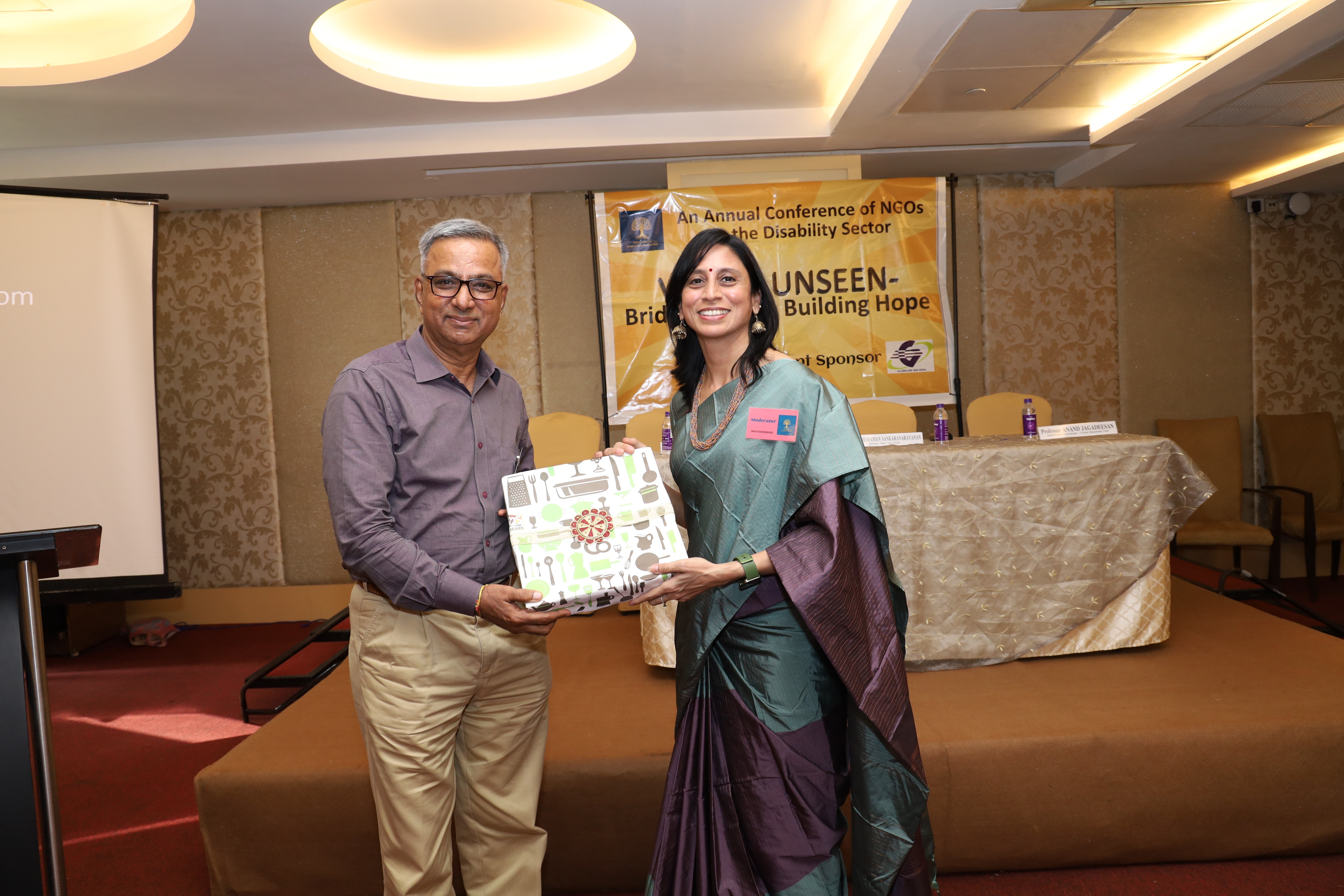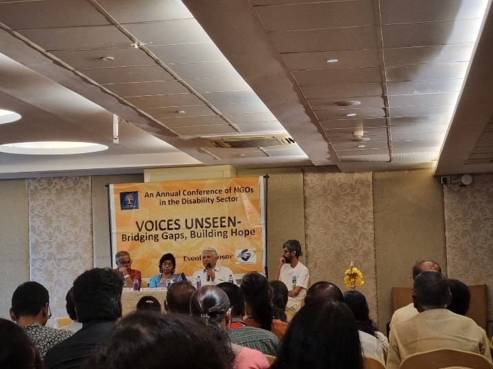 NGO Conference, Voices Unseen on 01 February 2025. There were 175 registration kits, which included a Wiro bound notebook, thank you card, feedback form, federation form, a pen and the agenda, 25 gift hampers, and 175 conference badges that were designed and made in YES. They were well appreciated by all the participants. Ms. Gayathri Suryanarayanan and Ms. Divya Venkatesh attended the conference. Ms. Gayathri was the moderator for one of the panel discussions. She moderated the panel on Fund Raising and CSR compliances.