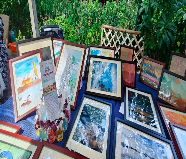 Students from Anandam Special School displayed an inspiring collection of paintings at Oviya Sangamam 2025, created by children with autism spectrum disorder and specific learning disabilities. Each piece reflected their imagination, artistic skills, and unique way of seeing the world.