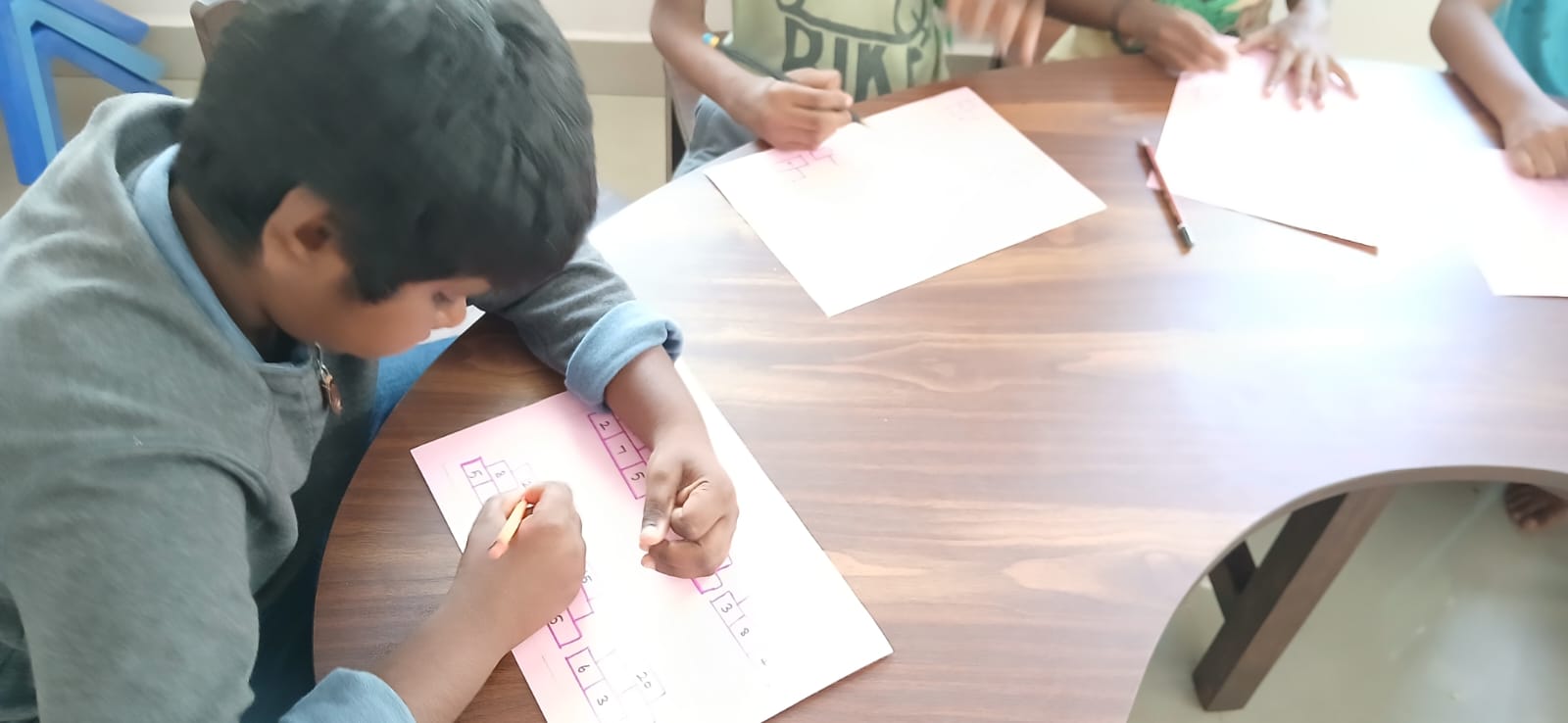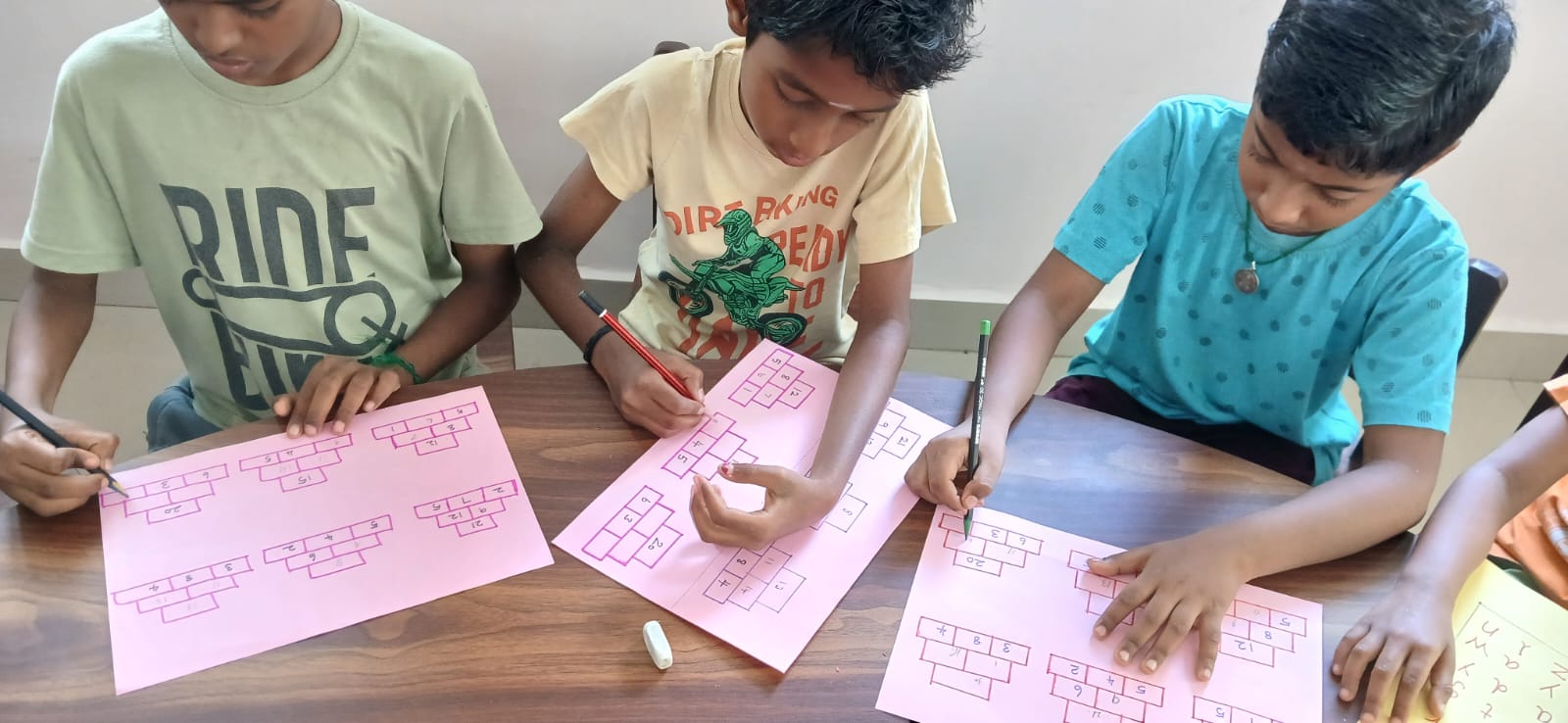 In spite of our regular therapy and remedial interventions, it was observed that some students need intensive training on basic concepts and other academic related concerns. So we selected 10 students for this program. These students were asked to come to Sharada and sessions were planned from 9.30 am - 12.30 pm on Saturdays. Here we focus on areas like attention focus, academics, motor development and regulation of behavior issues. The activities are carefully planned to motivate the students and also make learning an enjoyable one..