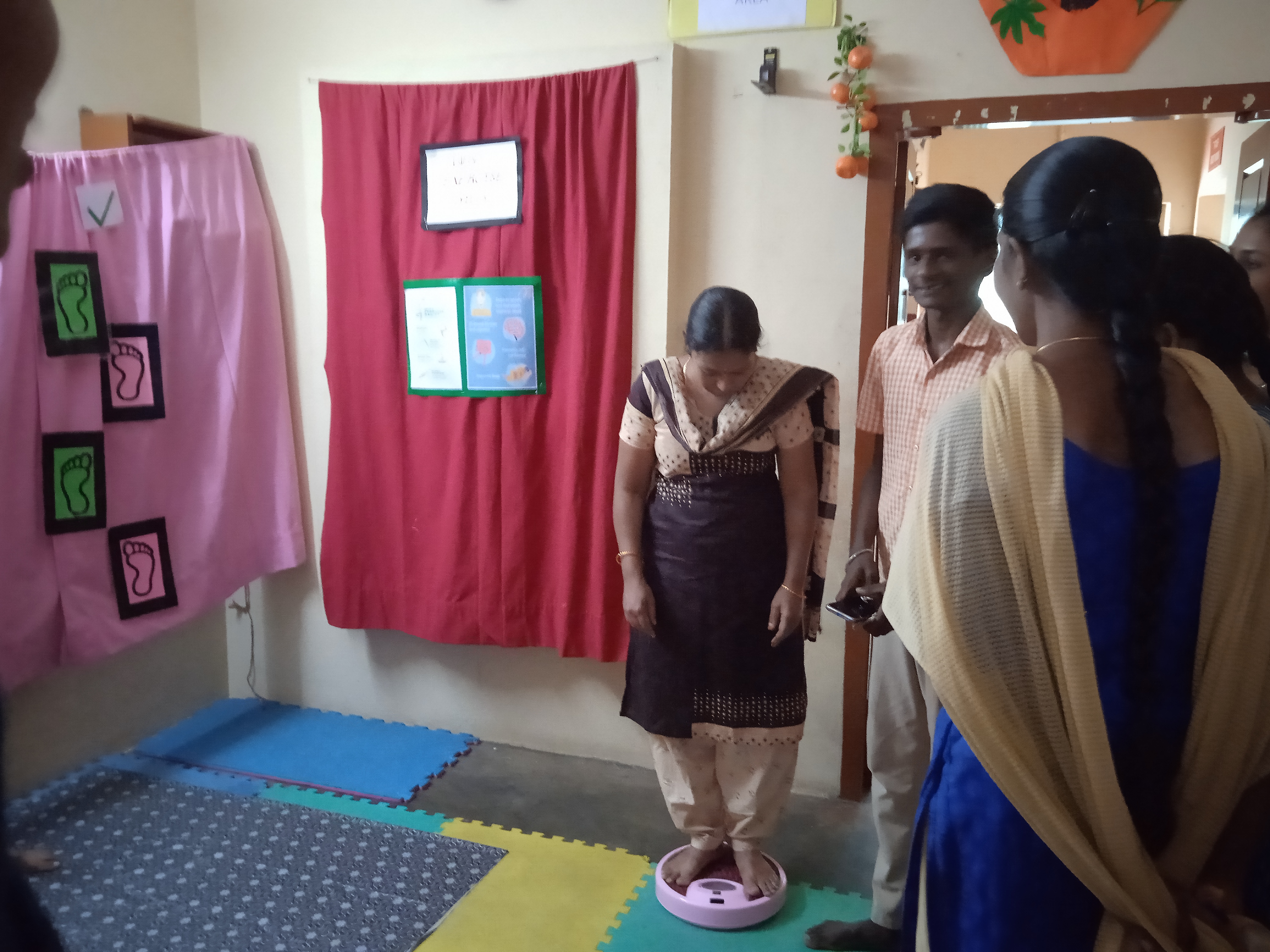 We were very happy and proud watching our Pre vocational student Sivarajan measuring the height and weight of the visitors(parents).
