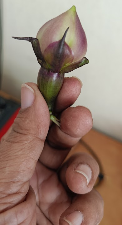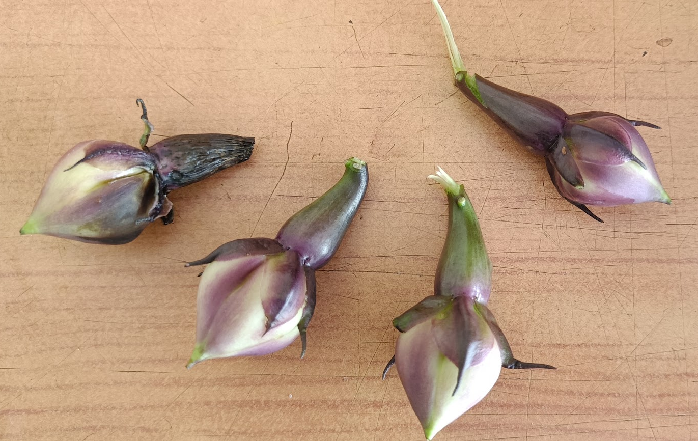 This is one among the many varieties of beans that were grown in the households of Tamilnadu and Kerala until a few decades earlier. They come in two colours. Green and purple. The one that we harvested was purple clove bean. Almost all of them, we lost to reasons like the snails, overwatering, rains, curious hands of children etc. But only this plant survived. We hope to collect seeds from them in the next harvest. And hope to grow, cook and eat a lot more vegetables from our garden and wish we could share these local variety seeds during our December bazaar.