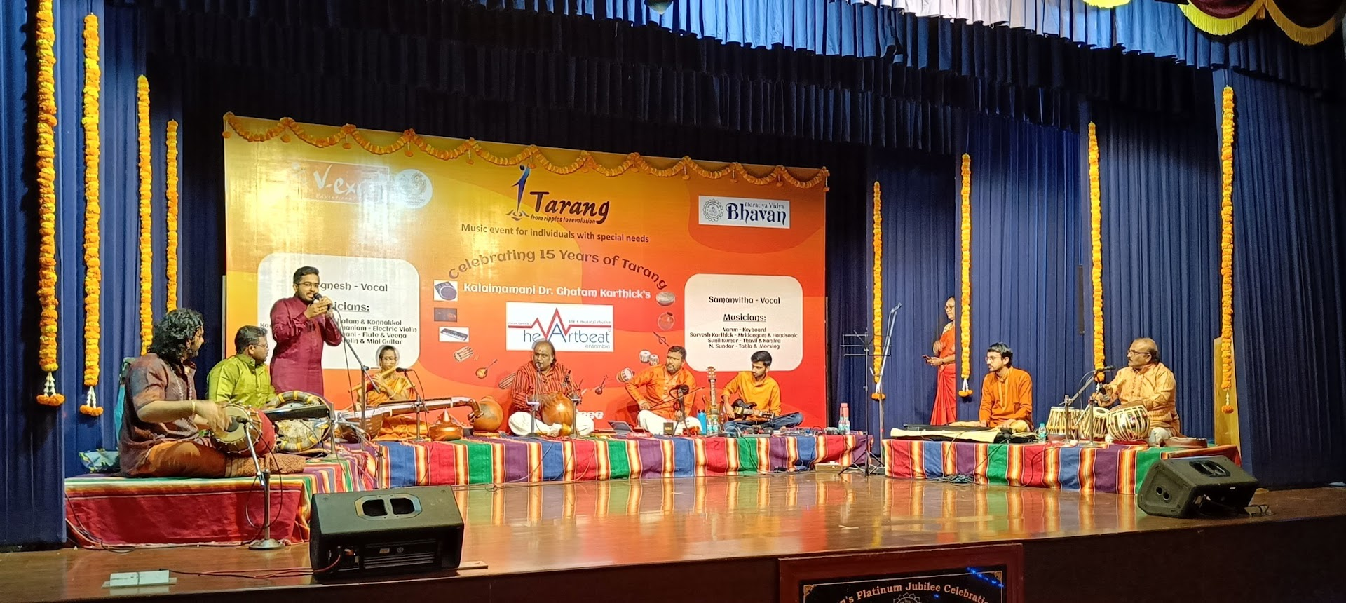 The Tarang (a musical event for individuals with special needs), organized by V-Excel Educational Trust, Chennai, was a grand celebration of 15 years of musical inclusivity. Featuring the mesmerizing Heartbeat Ensemble led by Kalaimamani Dr. Ghatam Karthick, the event showcased an array of talented musicians, enthralling the audience with soulful performances. Held on February 13, 2025, at BVB, Mylapore, the event was streamed online, allowing our special kids to participate as virtual viewers. Watching the live performances, they experienced the magic of music, enjoying an engaging and enriching event from the comfort of their space.