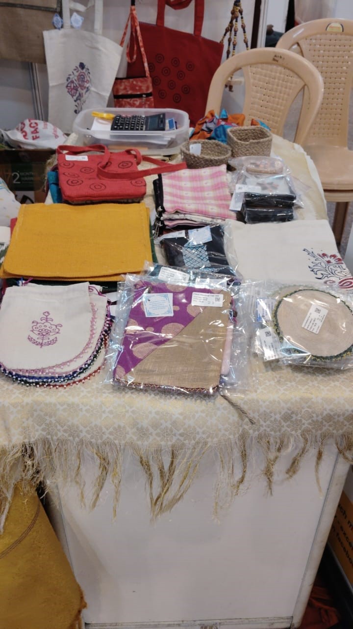 Products included fabric and Jute sling bags, Jewellery pouch and mobile pouch.