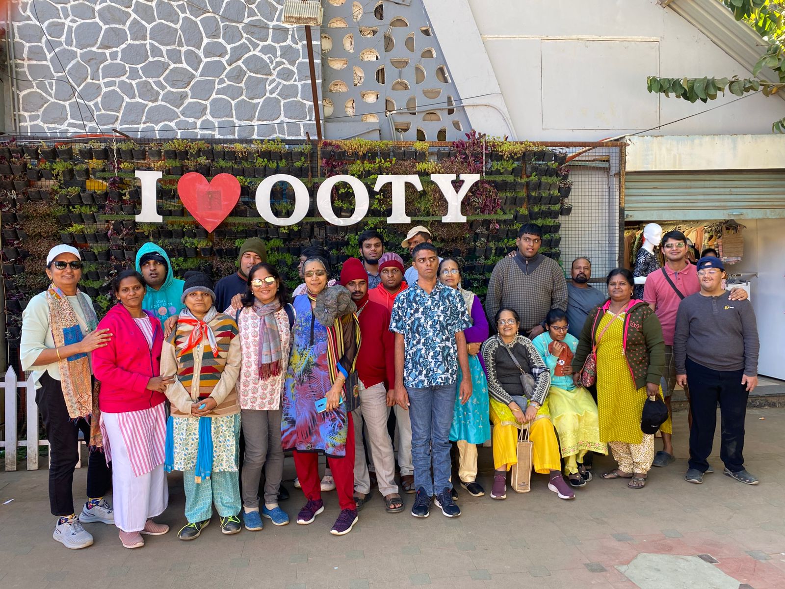 The chocolate, tea, and varki (crispy vegetarian snack)-making factories were a must-visit, while the Thread Garden, a masterpiece of embroidery, left everyone in awe. The Ooty Mountain Train ride through tunnels and valleys was nothing short of magical!