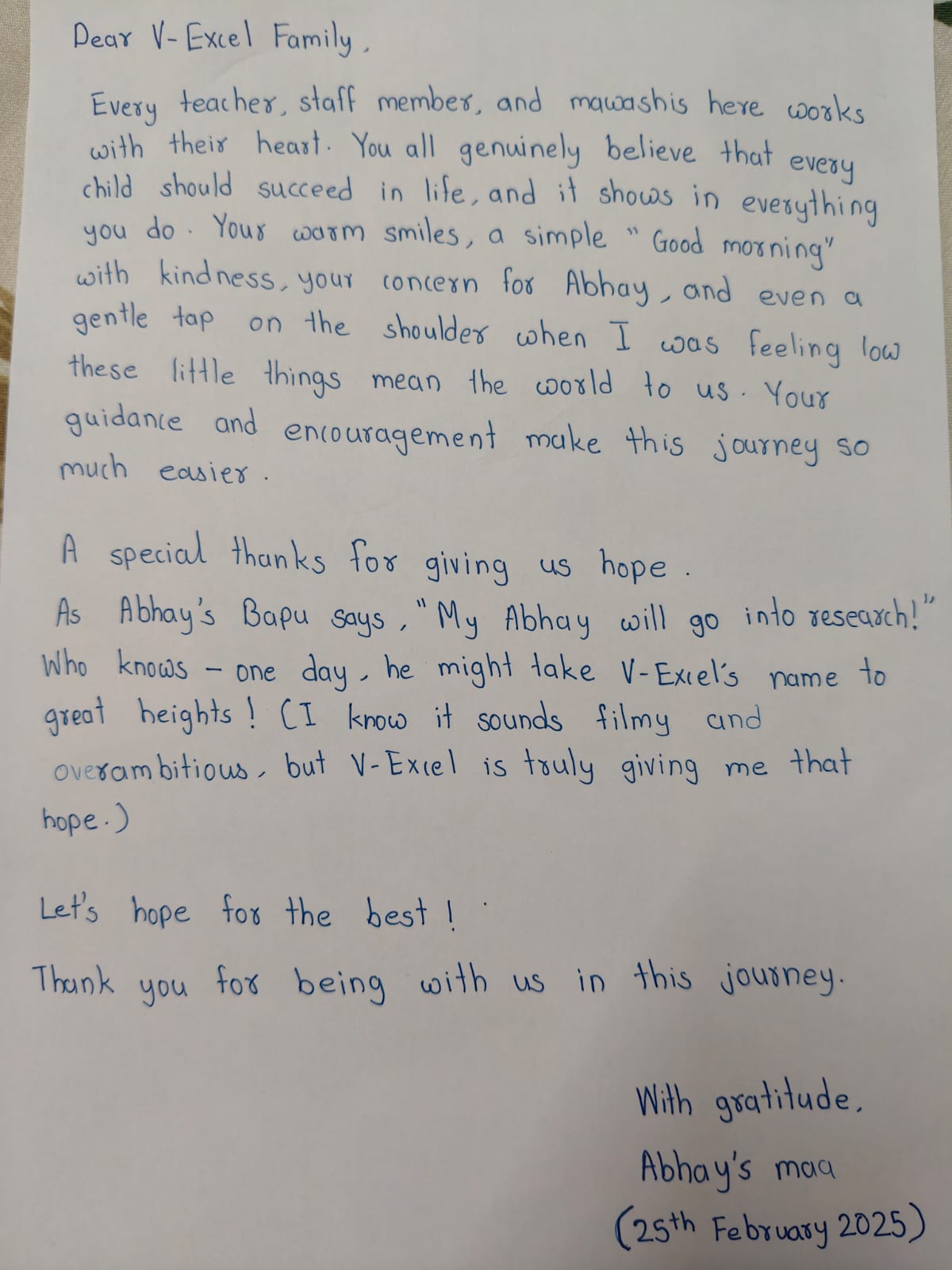 This heartfelt acknowledgement is testament to the small human touches being used in the daily work at the center. They also serve as the driving force for the team, working with the child. These simple words of acknowledgement are truly encouraging and motivating.