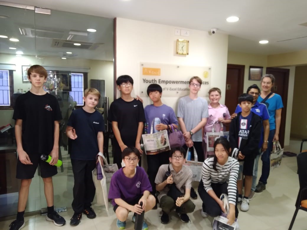 Twelve 8th grade students from American International School visited YES as part of their community work. They took a tour around the centre and got an idea about the vocational training program. One of YES trainees, Dhennussa, under the guidance of Ms. Girija and Ms. Vijisha, taught them to make stitched paper bags and vegetable bags. Those students also attended a presentation done by our trainee Akshara on her recent US trip.