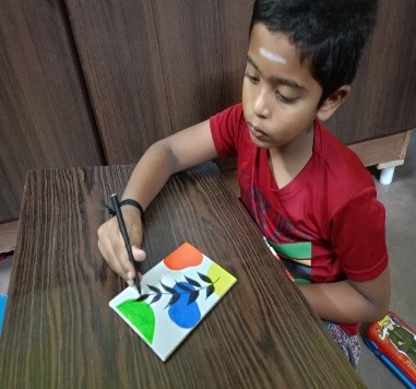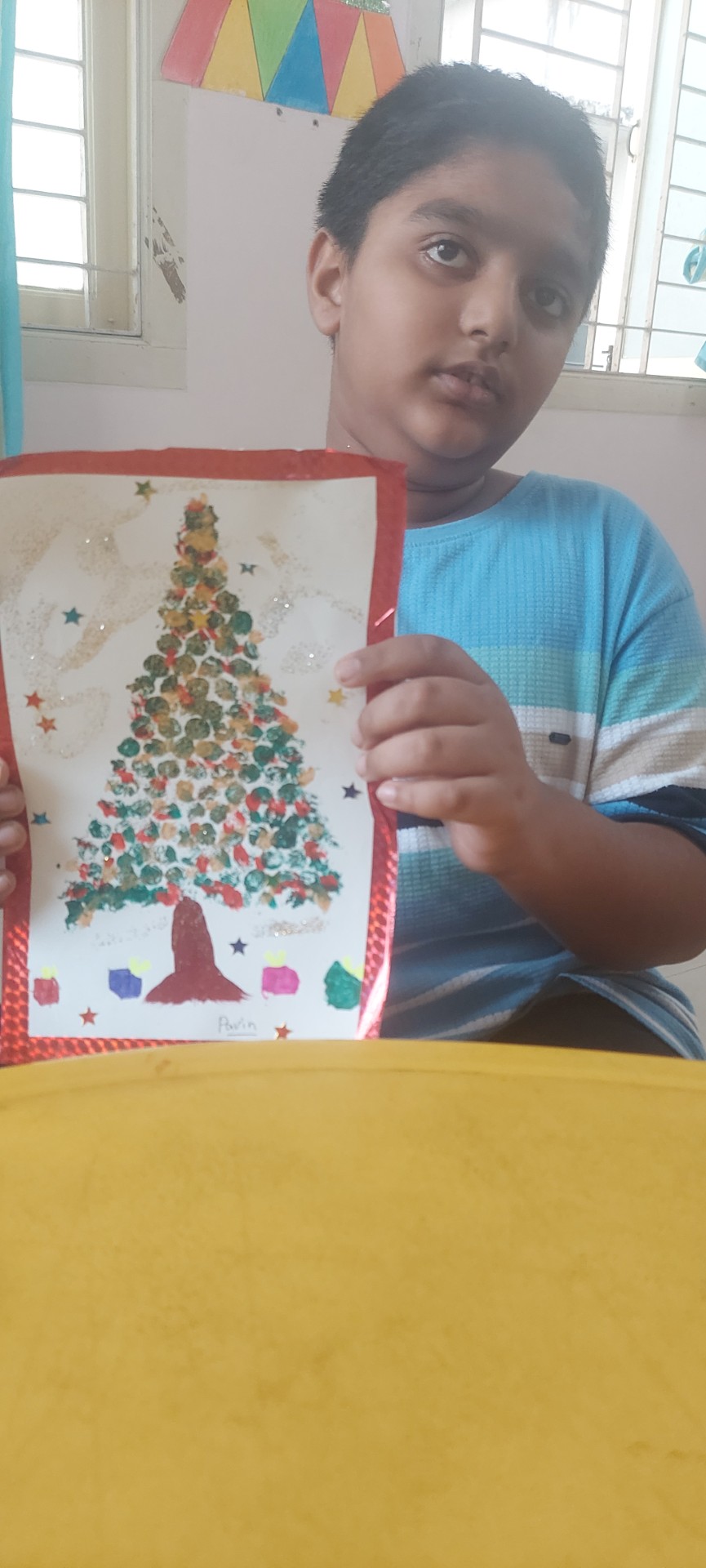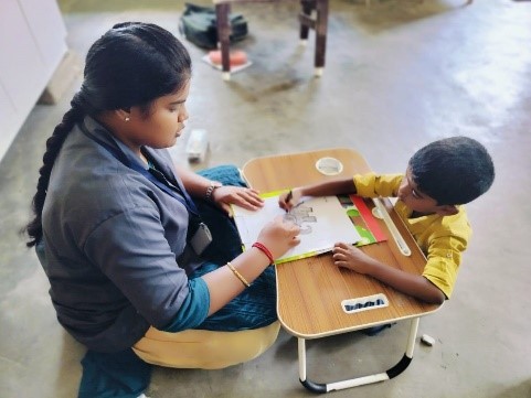 In 2023, Pavin worked on recalling and answering ‘wh’ questions, copying sentences, counting, number names and turn taking skills.The special educator facilitated many games, sensorial activities and hands on learning to help him enjoy his learning. By the end of the year, he became better in academics, social and behavioural skills.