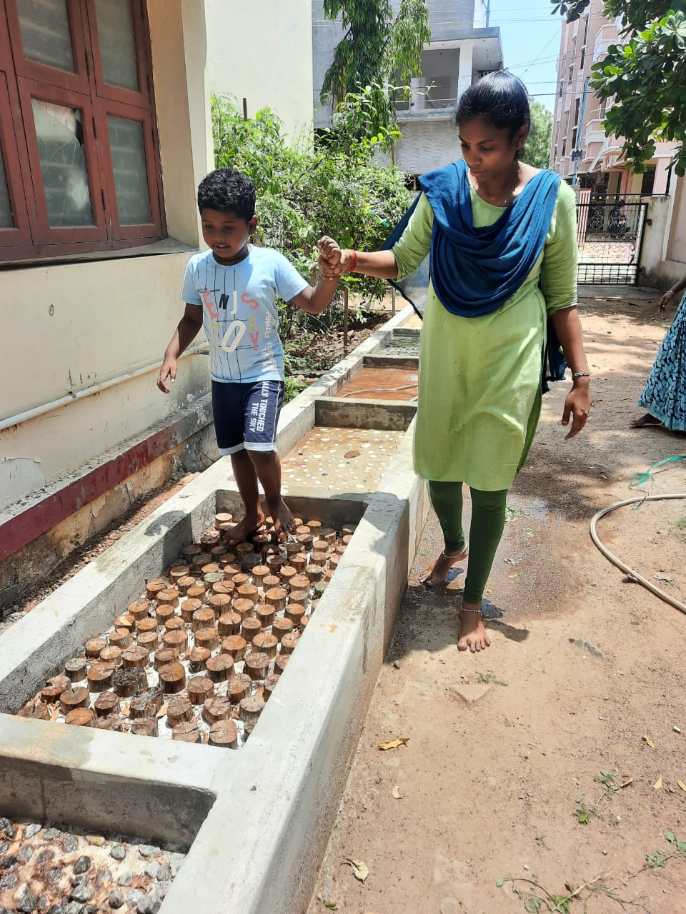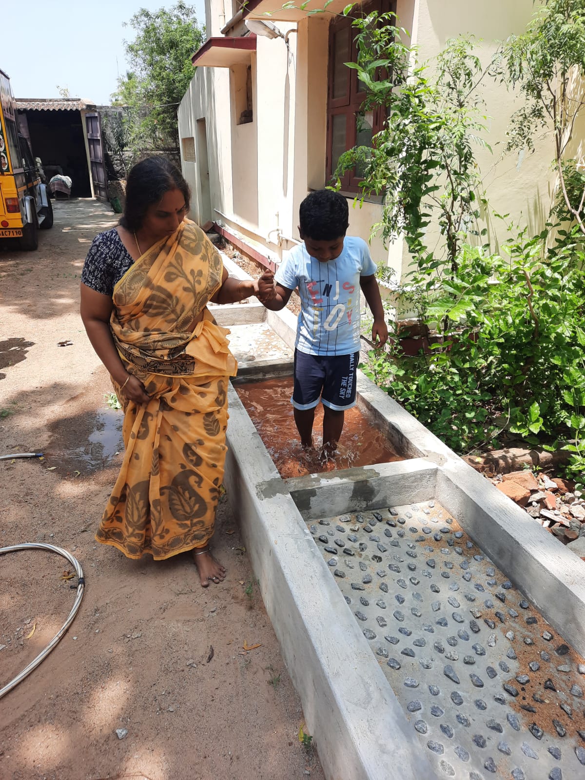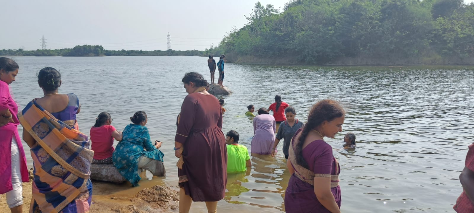 The week between 15th to 18th the teachers had meetings, planned the next year’s broad curriculum, had therapy – painting and foot massage and spent time together talking about the year’s happenings. On 17th all the teachers visited Neha, Subha and Vasanthi aunty’s homes at Thazhambur and spent the whole day till evening. We watched the complete recording of the play together, had lunch and visited the nearby lake and had fun in the water.