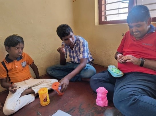 In 2025, after attending the sessions daily, Pavin showed significant improvement in clarity of speech, read 3 letter words very well, solved simple addition and subtraction mentally. He is interested in singing and dancing as well.