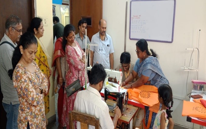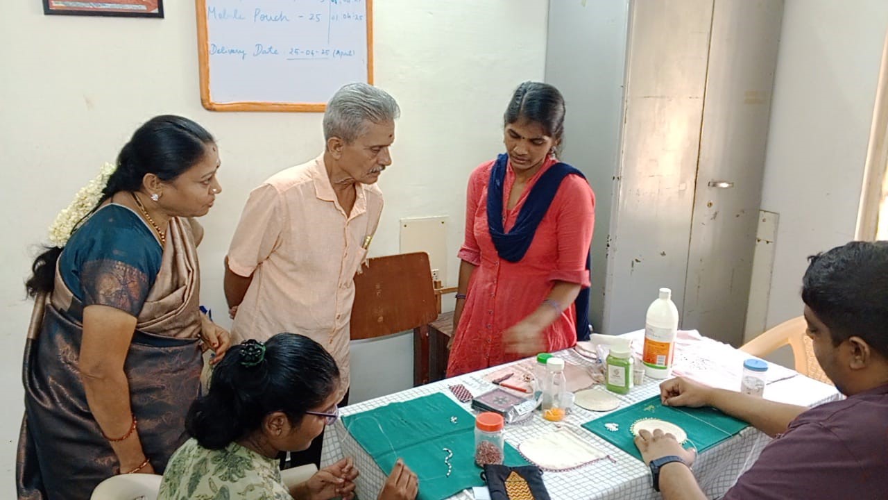 Trainees were busy with the production of Jute pen stand / Bowl, paper bag for Tula and Gada block printing, mobile pouch stitching and bead patch work