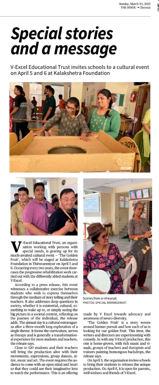 We are happy to share that The Hindu has featured The Golden Fruit in its March 30, 2025 edition! 🎭✨