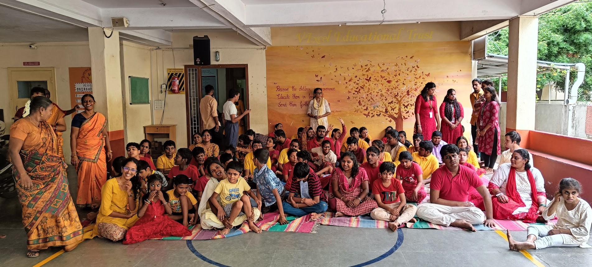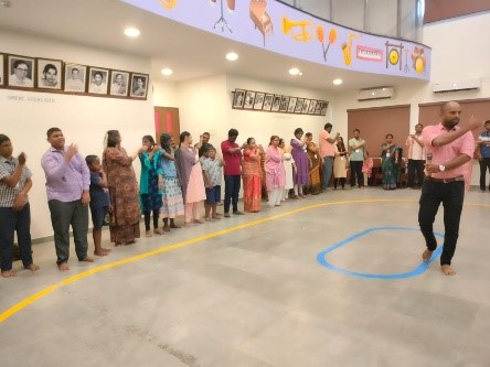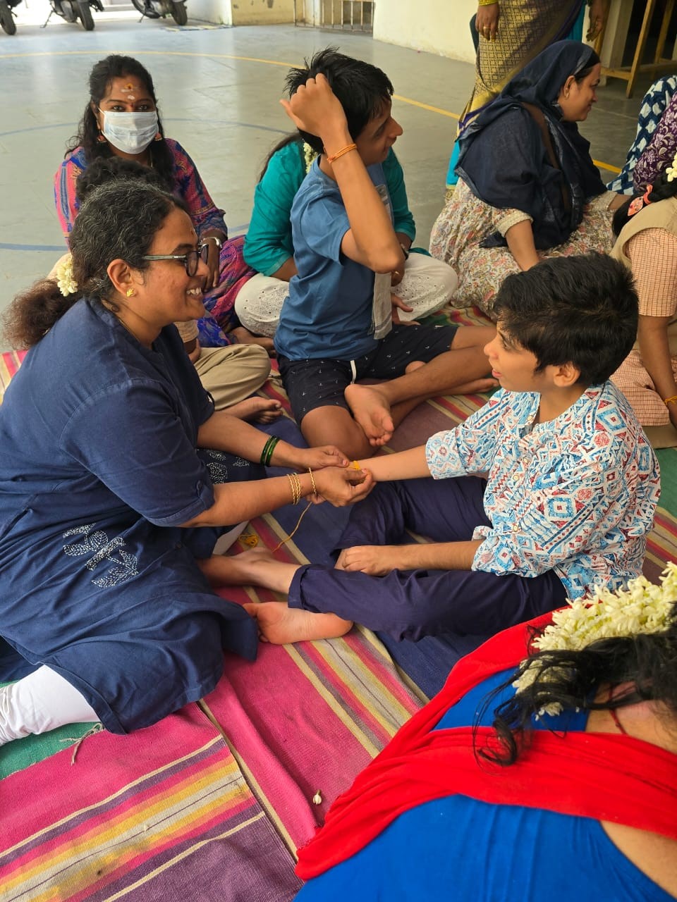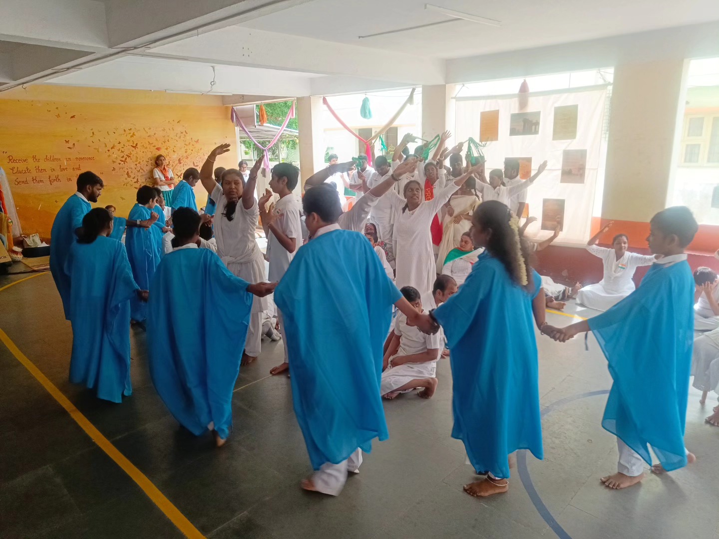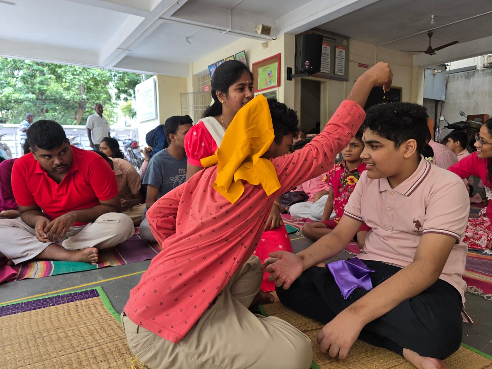On 29th August 2025, our trainees, teachers, and staff visited the special school at Anandam to interact with their trainees and teachers. The day included fun activities such as movement, art, fun games and breathing exercises. Anandam students performed bhajans and played the mridangam beautifully. Everyone enjoyed the sessions, the warm hospitality, and the delicious food