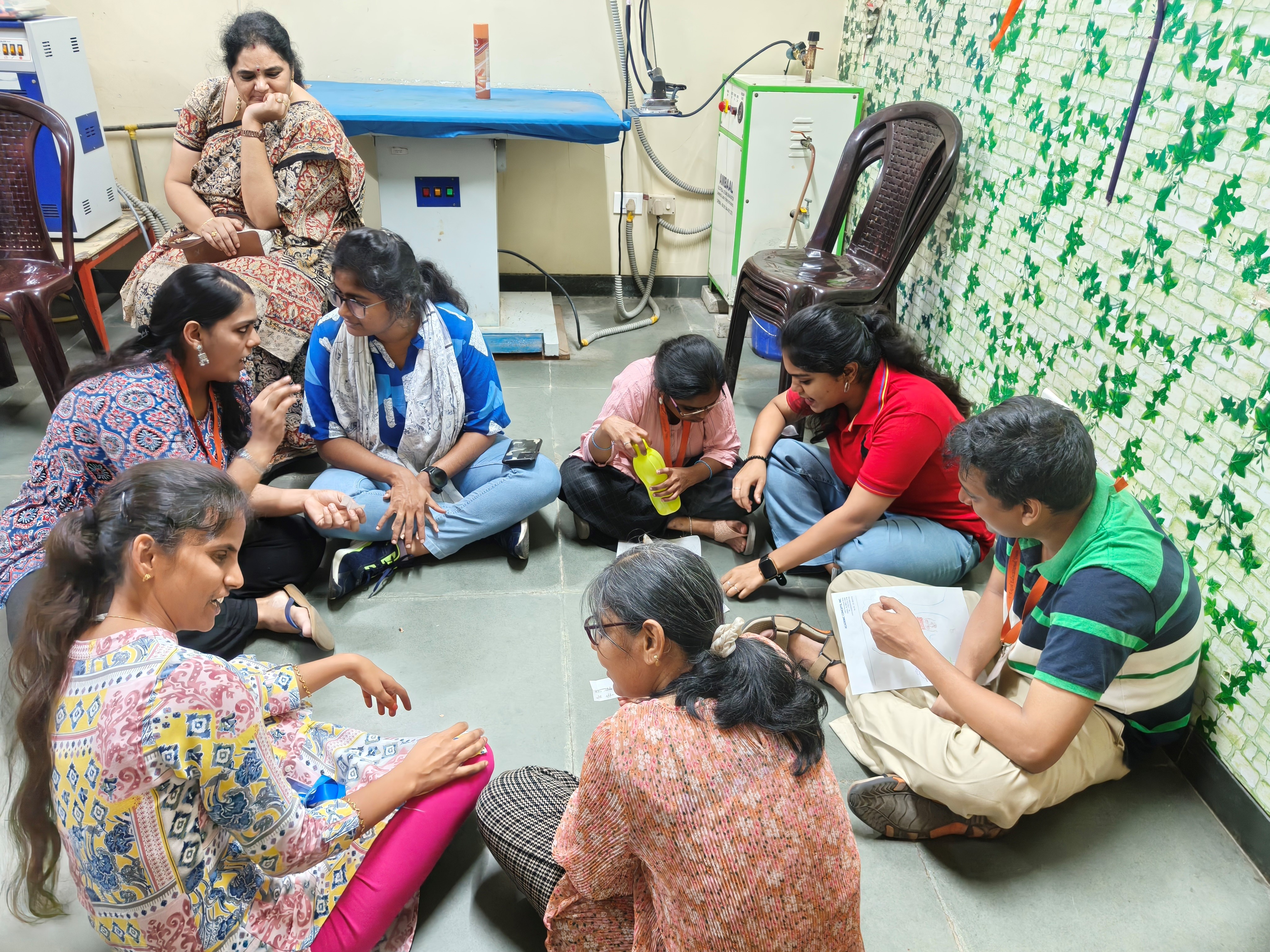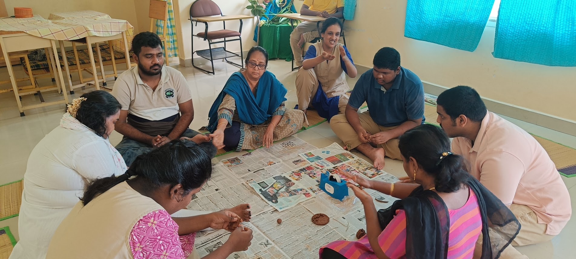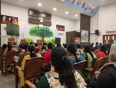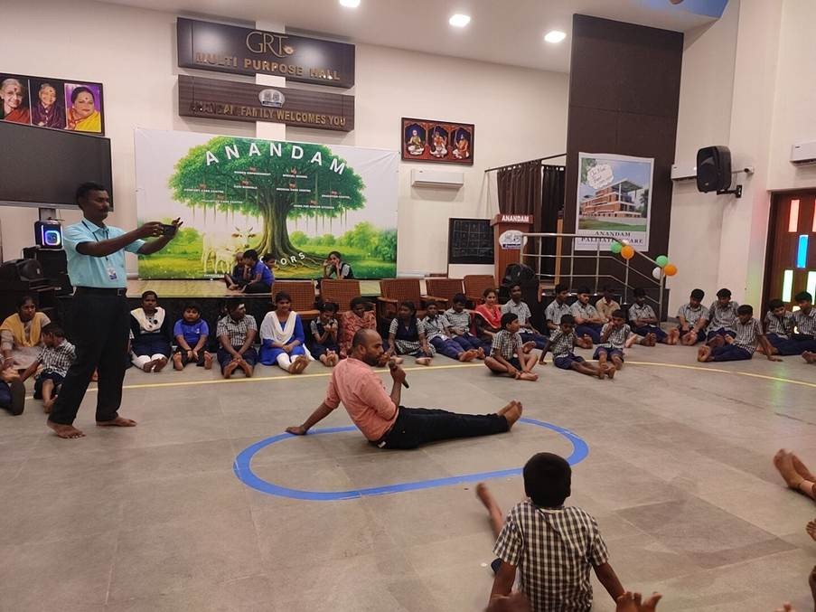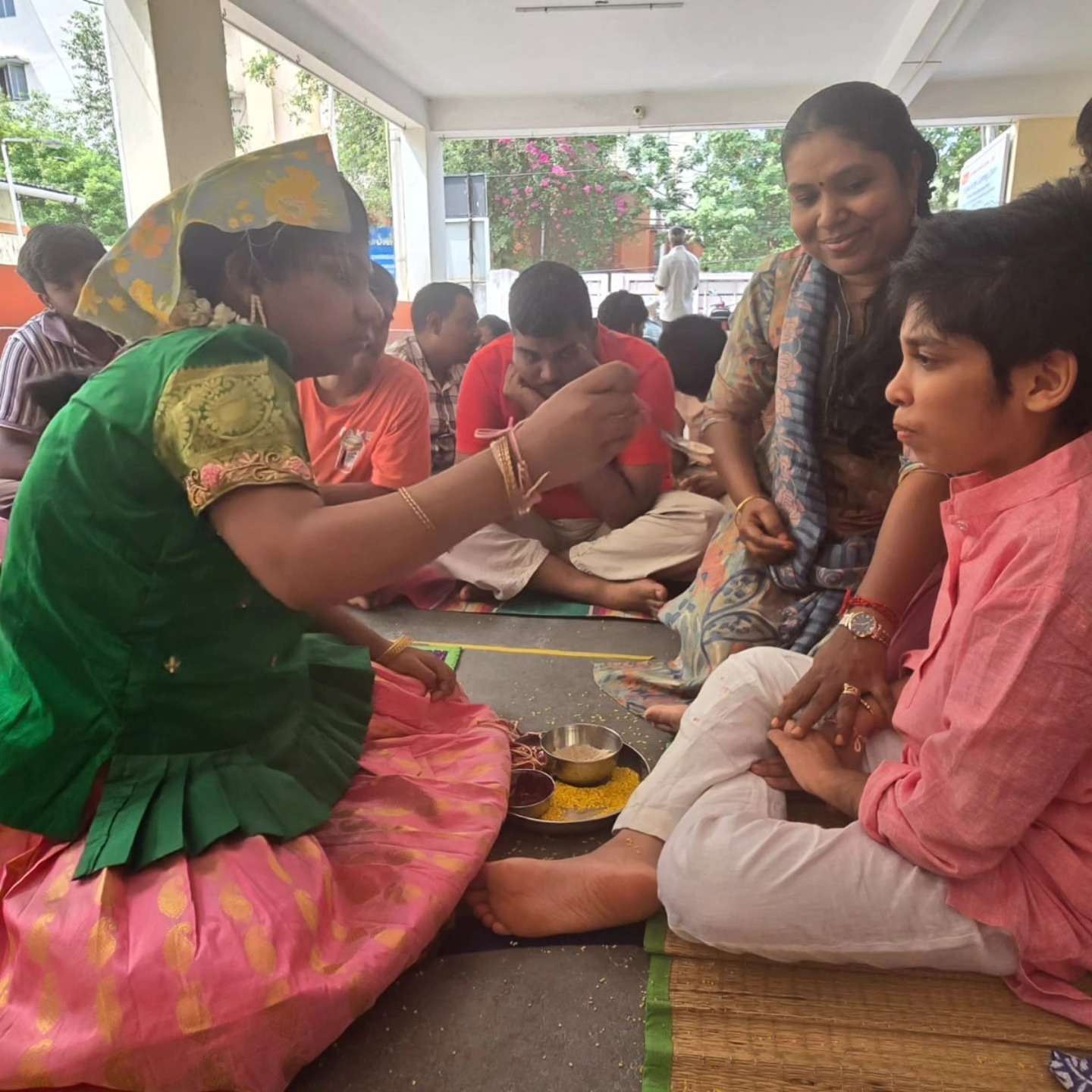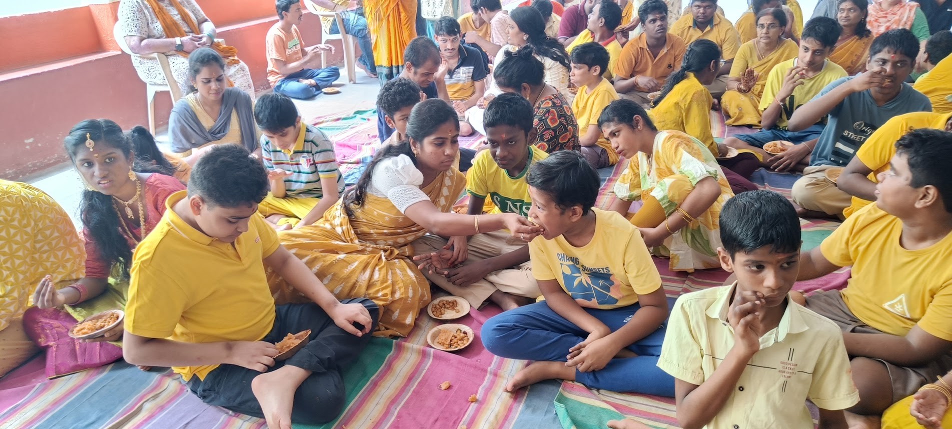 On 29th August 2025, our trainees, teachers, and staff visited the special school at Anandam to interact with their trainees and teachers. The day included fun activities such as movement, art, fun games and breathing exercises. Anandam students performed bhajans and played the mridangam beautifully. Everyone enjoyed the sessions, the warm hospitality, and the delicious food