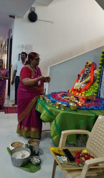 Krishna Jayanthi was celebrated on 14 August with a lot of cheer and joy. A quiz on Lord Krishna, his birth and his life, was conducted, and the trainees were so quick in answering most of the questions. There was a small puja and then the snacks were distributed.