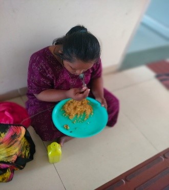 Meenakshi was introduced to the bead work and she started showing interest.She was able to pick up the activity very fast.