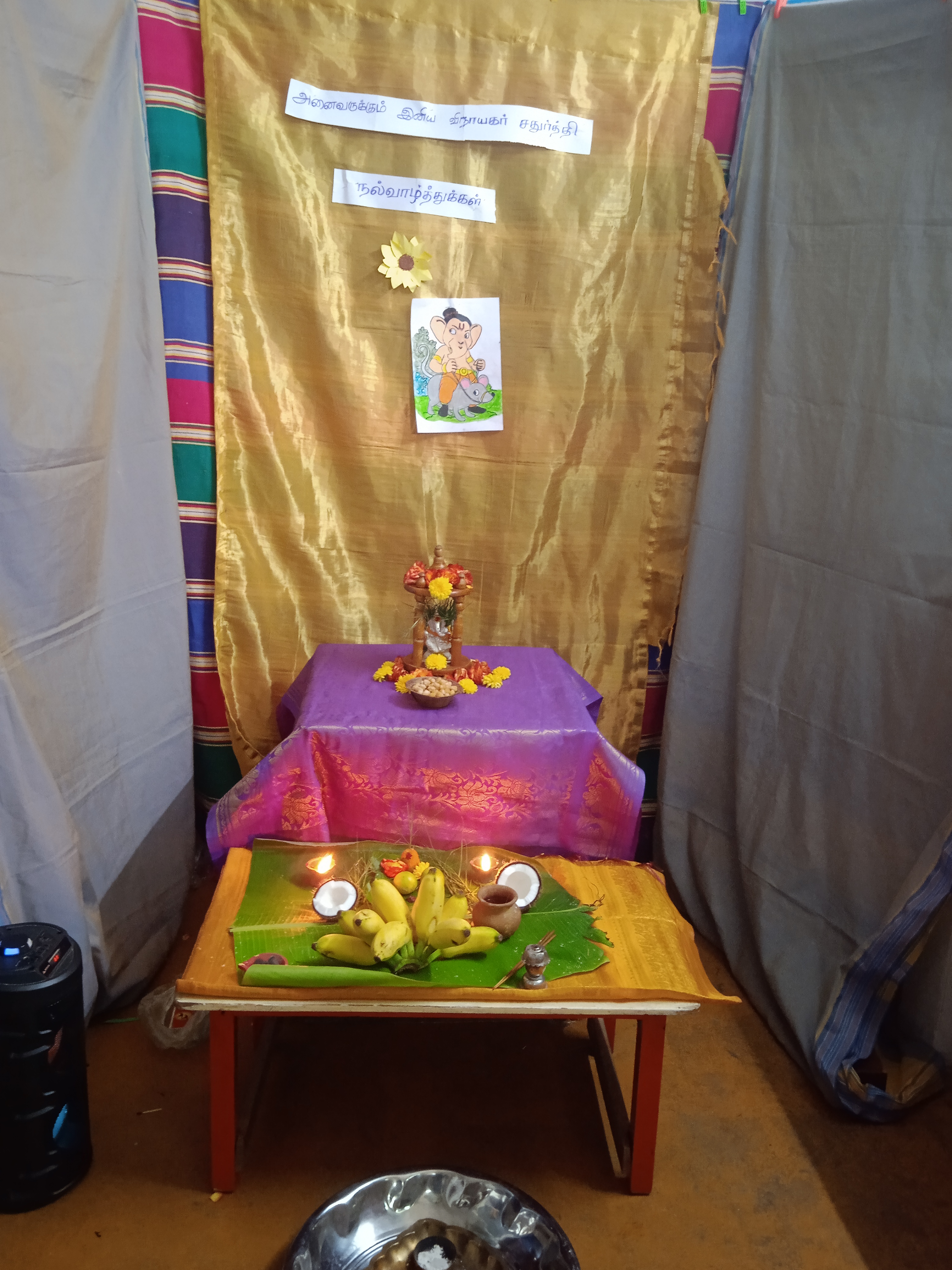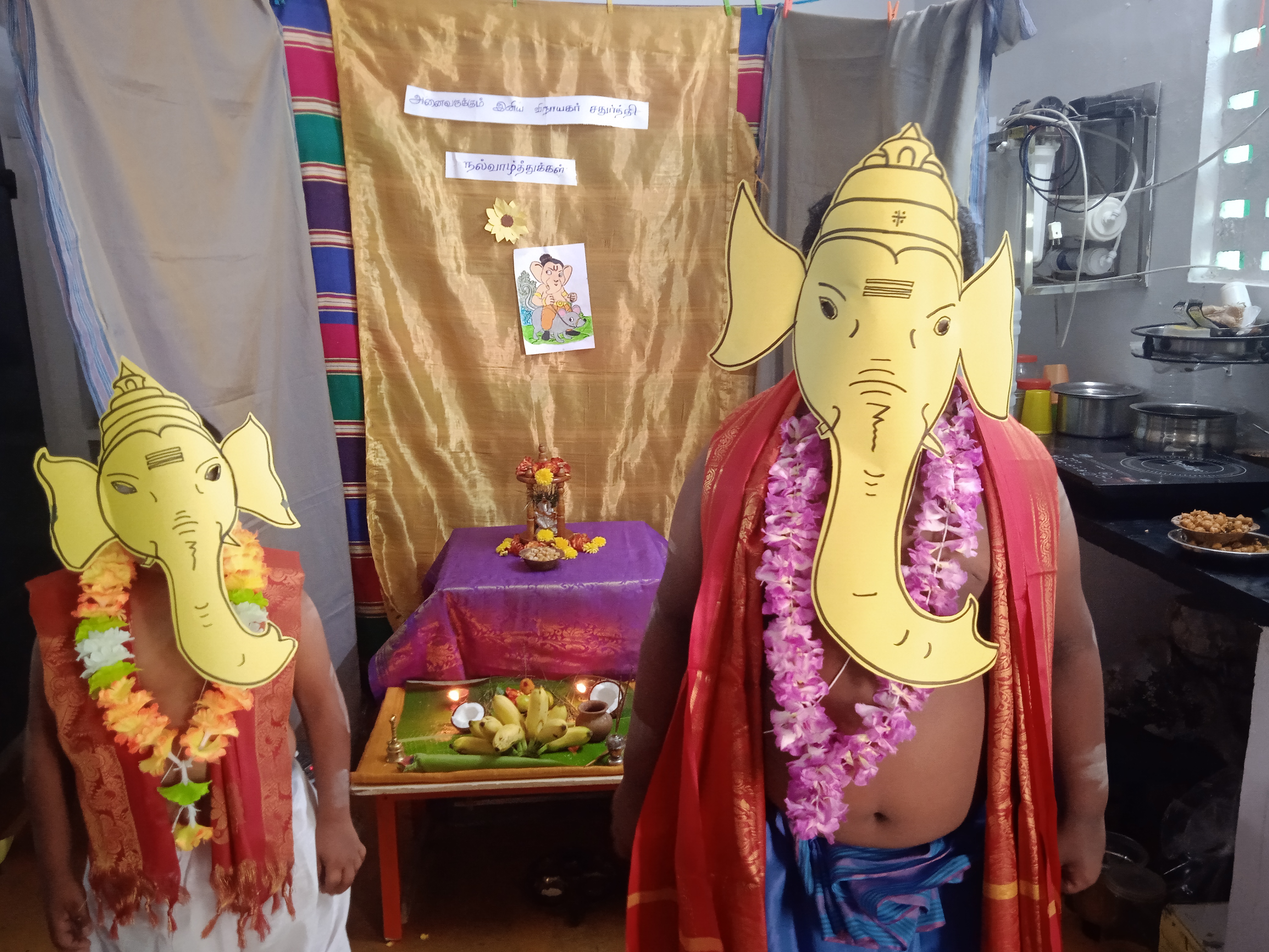 We celebrated Vinayaka Chathurthi on 26th August 2025. For the pooja, children brought homemade Vinayagar idols, adding a personal and creative touch to the festivities. They also enjoyed painting peepal leaves as part of the celebration.