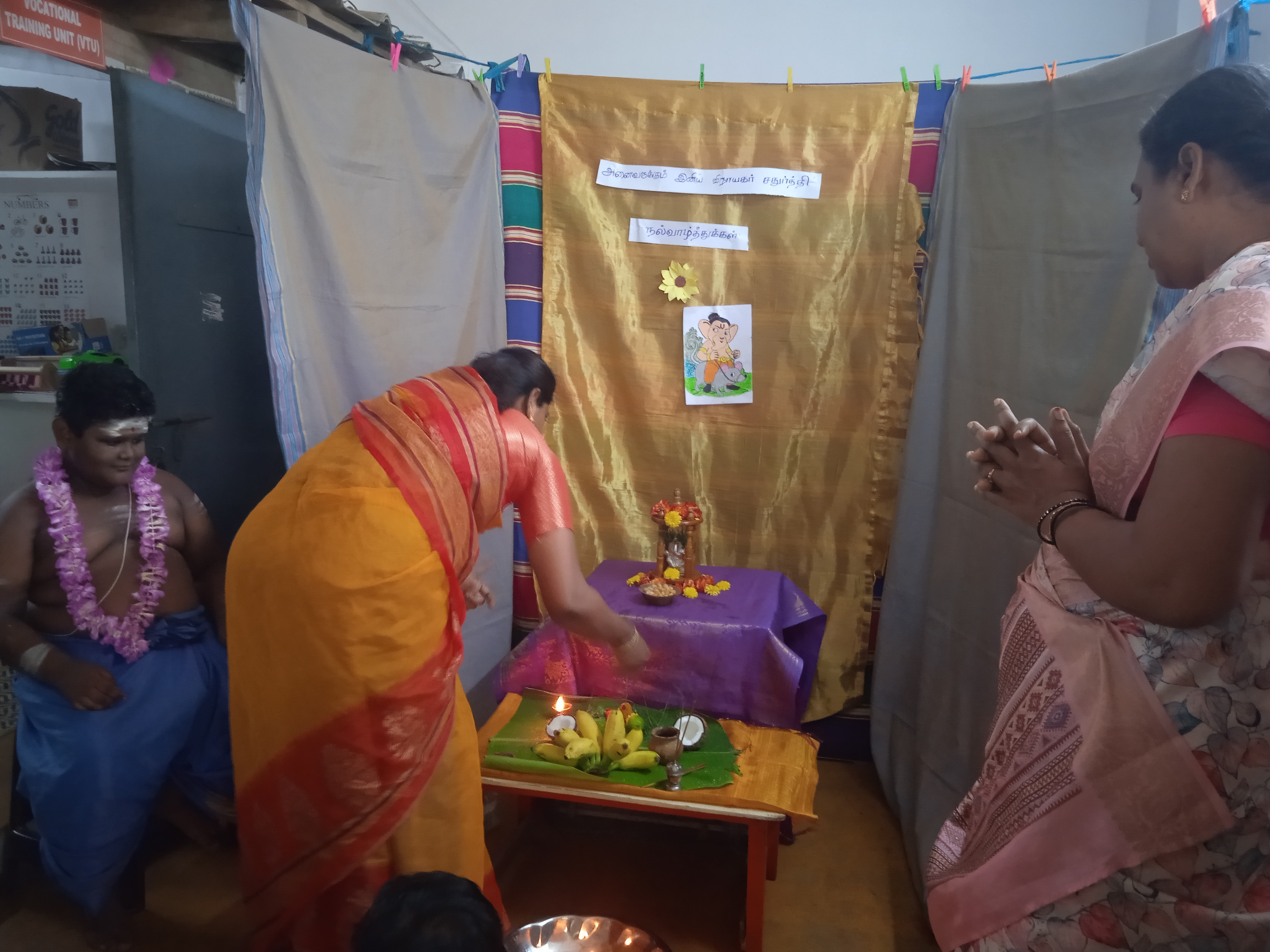 Vinayagar Chathurthi was celebrated on 27 August. A small puja was done to the premise Vinayagar temple in the morning. This was followed by a kolam activity of creating a Vinayagar picture using dots. Trainees did that and decorated the picture with the materials that were available at the respective unit. Yummy sundal was made and distributed.