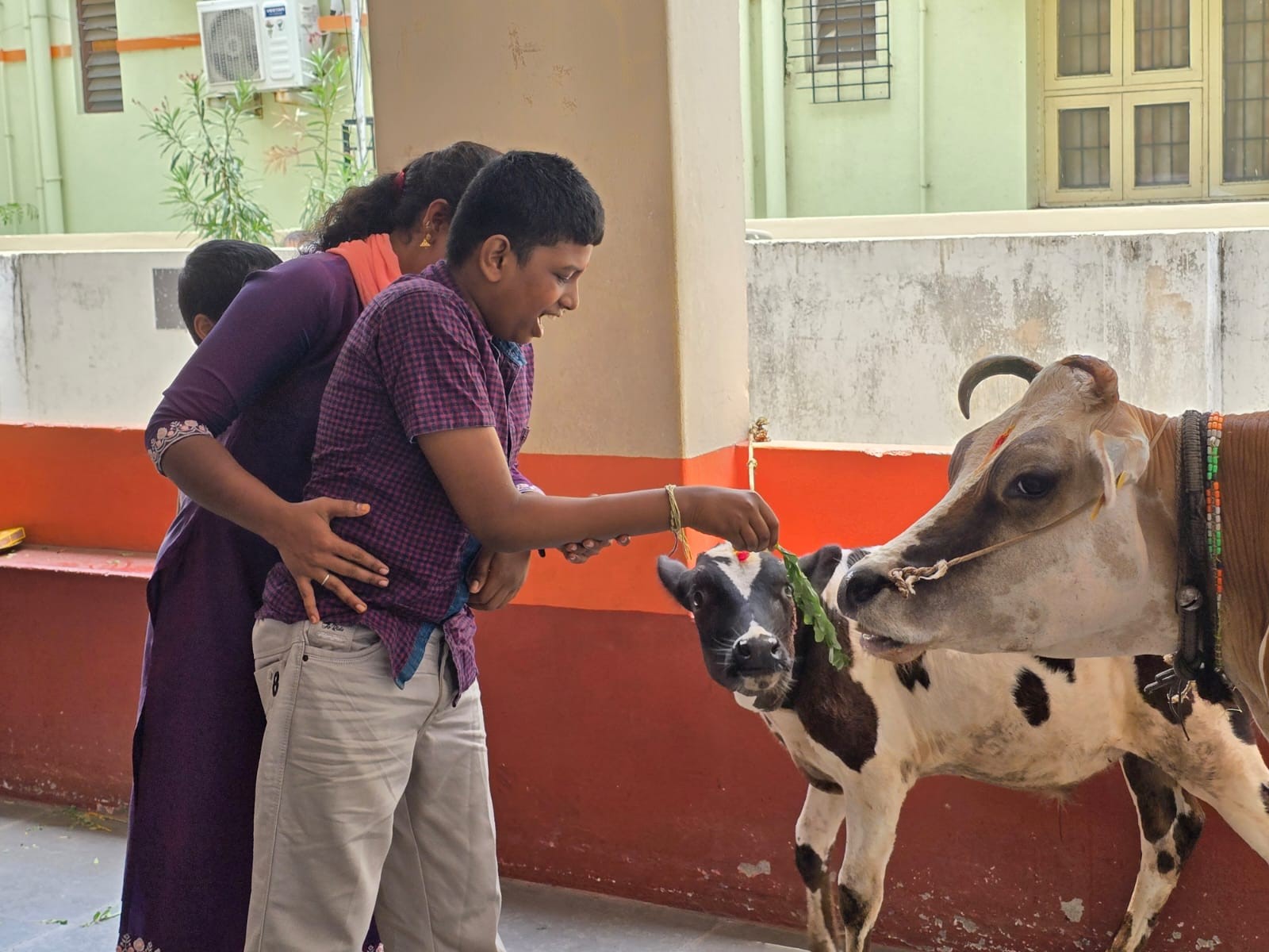 Our students recently visited the Ramana Maharishi Ashram, where they soaked in the serene atmosphere and had a heartwarming interaction with the ashram's cows 🐄 a gentle moment that sparked joy and curiosity.