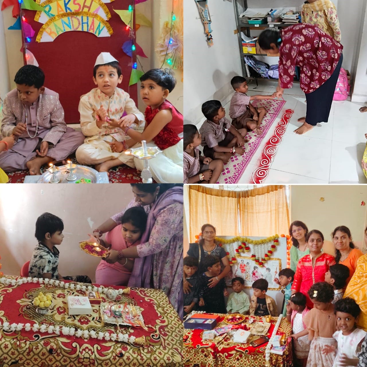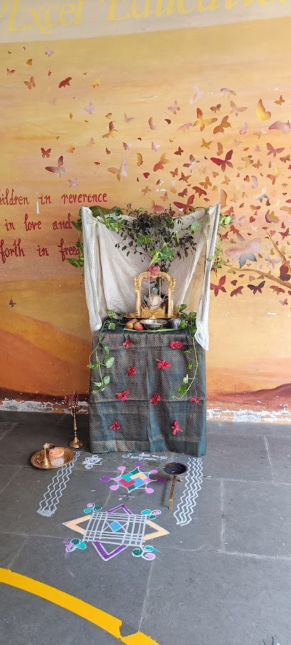 We celebrated the birth of Lord Krishna involving our students and staff. Staff made colorful kolam and drew Krishna's tiny footprints from the entrance to the pooja area. Children dressed up as Krishna, Radha, and Gopikas. A small pooja was done with a Krishna statue, and children sang bhajans and slokas along with the staff. Prasadam was given to children and parents by Dr. Nithya . The celebration reminded us of Krishna's playful nature and his message of love and truth.