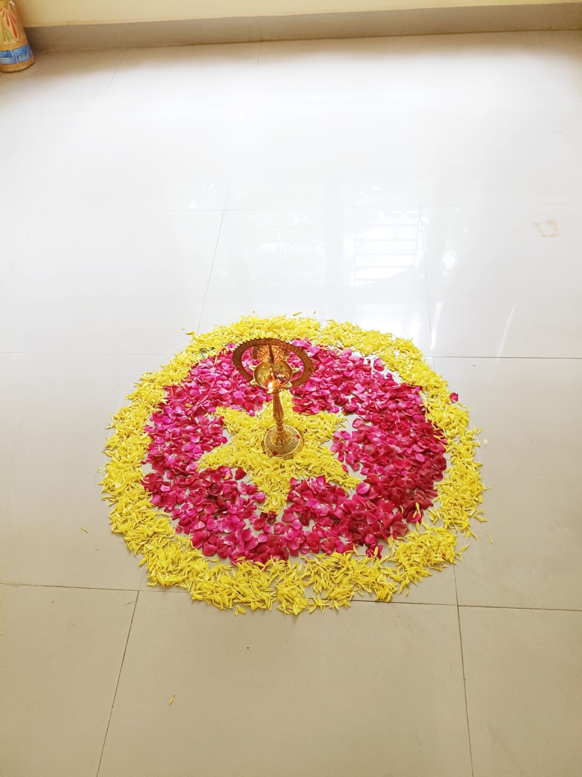 Onam is in the first week of September, but it is celebrated for10 days earlier to Thiruvonam day. In KLC the “Pookolams - Flower rangolis” were arranged in the landing by students and teachers of different grades, from 26th of August, in preparation for the celebration of Onam on 4th September.