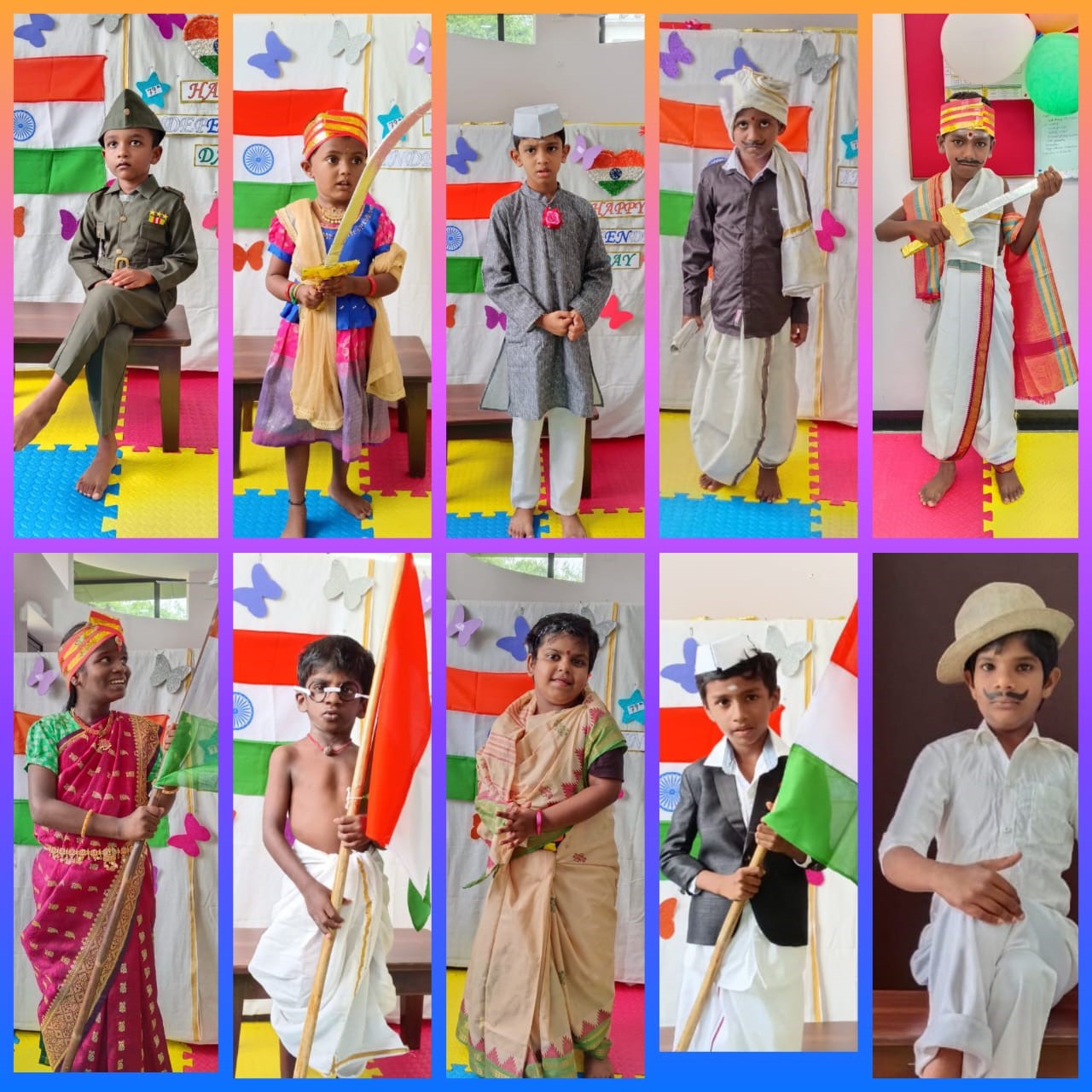 On 14th August 2025, we celebrated Independence Day with our children dressed as renowned freedom fighters, including Mahakavi Bharathiyar, Mahatma Gandhi, Jawaharlal Nehru, Subhash Chandra Bose, Bhagat Singh, Veerapandiya Kattabomman, Veeramangai Velunachiyar, Anjalai Amma, Kodi Katha Kumaran, and our beloved motherland, Bharatha Matha.