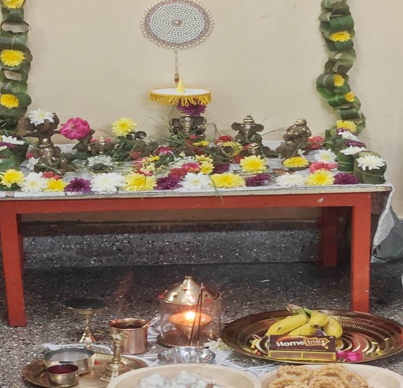 Children and staff made Vinayagar statues using clay. A small pooja was done with decorations, followed by prasadam distribution. Everyone enjoyed the celebration with devotion and creativity.