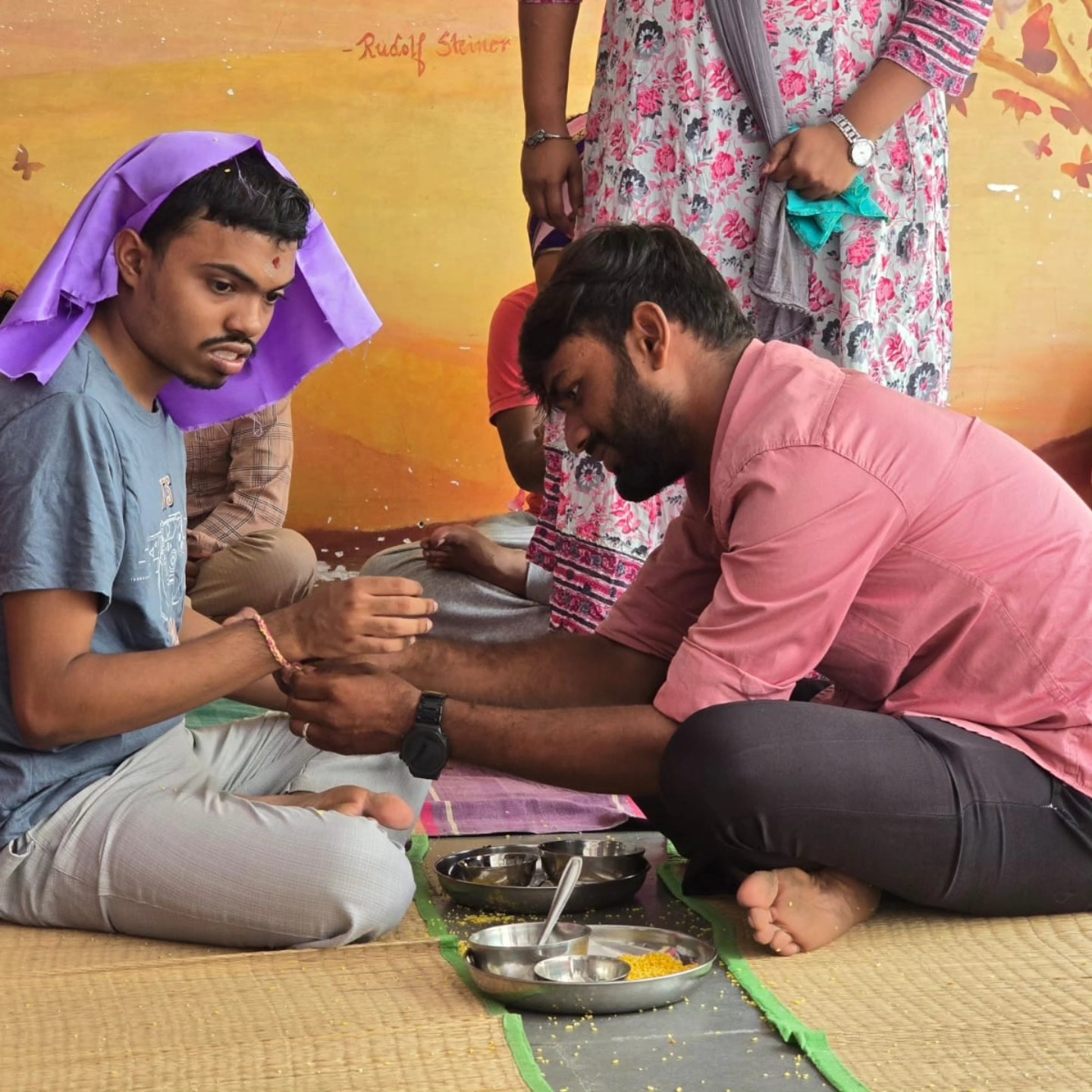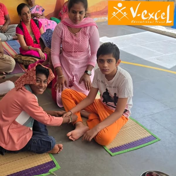 Every festival in V-Excel is celebrated in it's quintessential form. Children in the special school KLC celebrated Raksha Bandhan as a sharing of loving energy between students with each other, teachers and students as well. Not defined by gender or relationship it just shares a brotherhood amongst everyone. Special significance lies in the fact when such celebrations and connections are made, the calm acceptance, sitting tolerance, and peaceful smiles all tell us that the soul understands what the eyes cannot see.✨