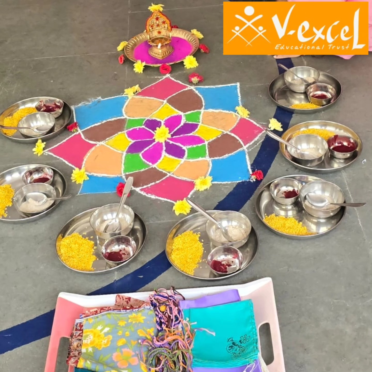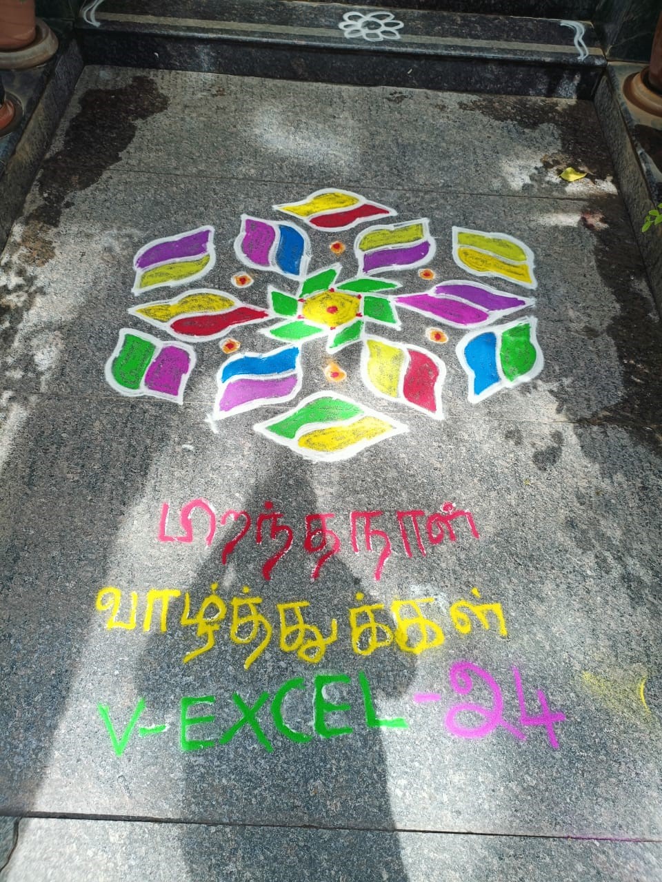 V-Excel's 24th anniversary was celebrated by a beautiful kolam at YES.