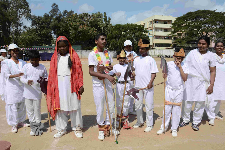 In an interesting behind the scenes story, Vidya Meenakshi a student of Grade 5, suggested that all the princes vying for the hand of Sita from Mithila, should gallop like horses which would be possible only when both their legs were tied! So the challenge of the race went up and the six princes hopped on their feet and the makeshift horse made of bamboo stick and then picked up the bow and won the hand of Fair Sita.
