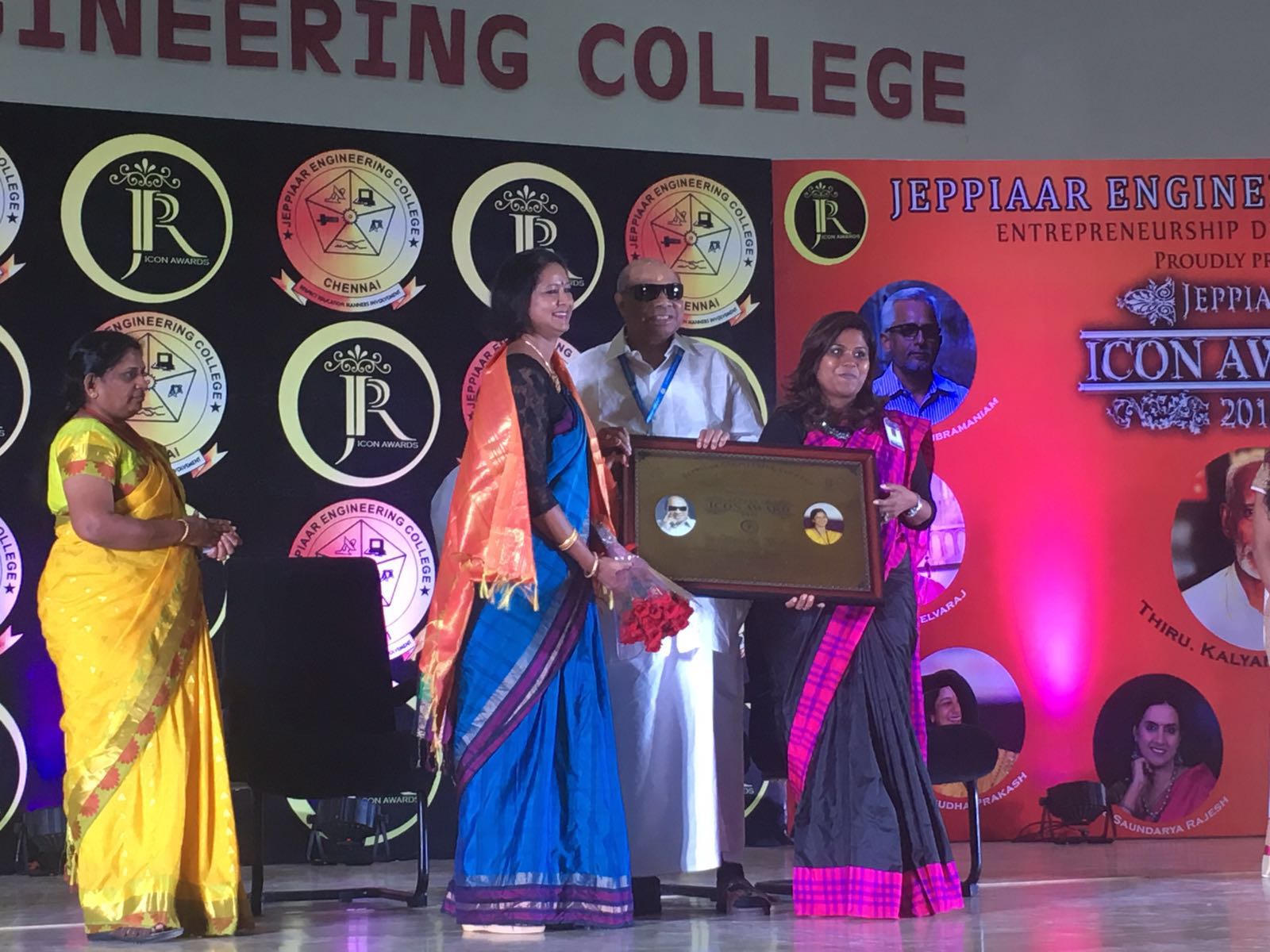 Dr. Vasudha Prakash also received the Jeppiaar Icon Award under the category of Educational Entrepreneurship on Thursday 25th February 2016 at Jeppiaar Engineering College, Rajiv Gandhi Salai, Old Mahabalipuram Rd, Semmancheri, Chennai, Tamil Nadu 600119. The JEPPIAAR Icon Award is a prestigious Award given in the name of Hon'ble Chairman Col. Dr.Jeppiaar , M.A., B.L., Ph.D. It is his "Vision Turned Mission " to honour those who have won laurels in their respective field. Every Year , people with high profile belonging to different fields are selected based on their achievements.