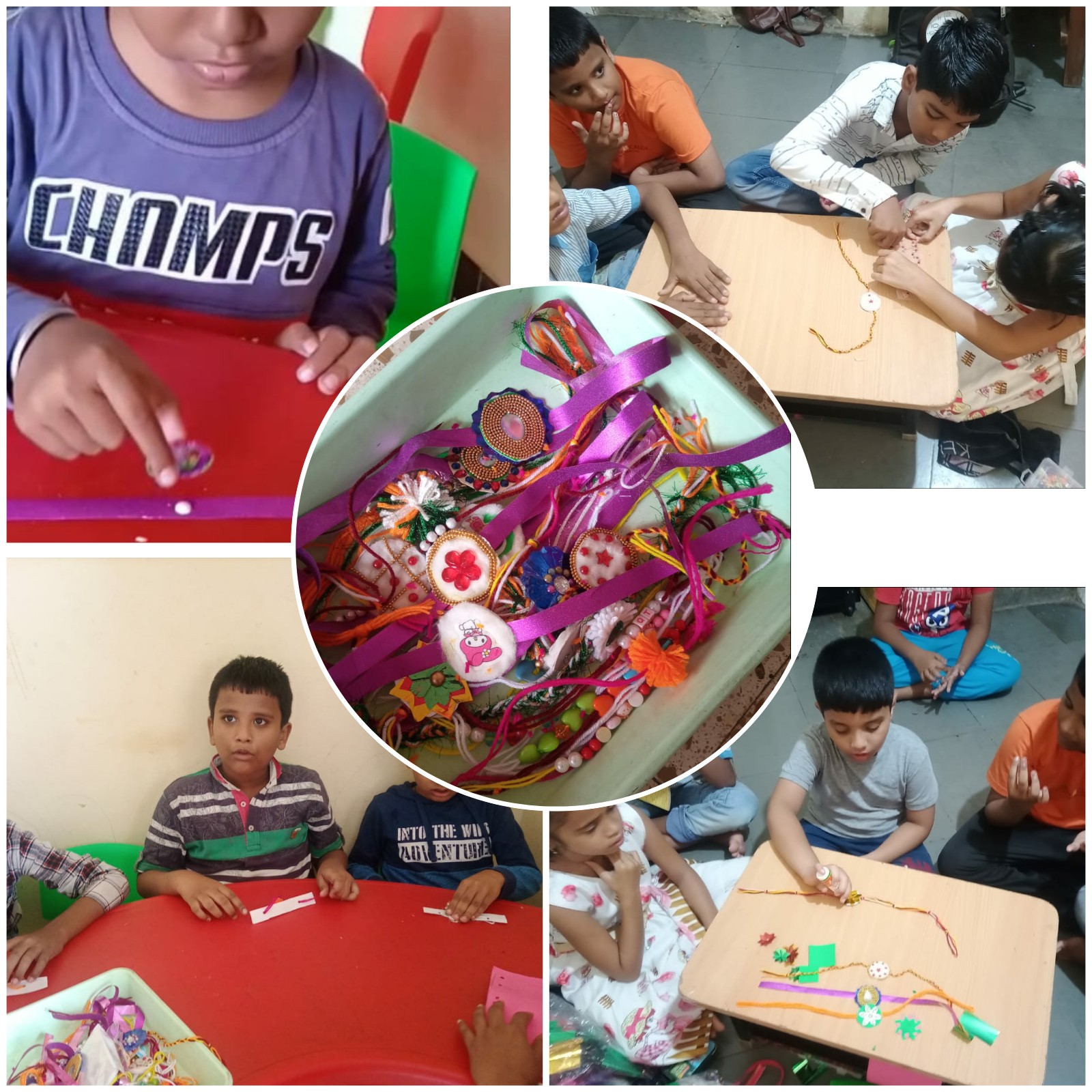 Rakshabandhan was celebrated on 10th Aug in all the 3 centers with great enthusiasm. The VTU trainees prepared raakhis, which were sold to parents of all the centers.